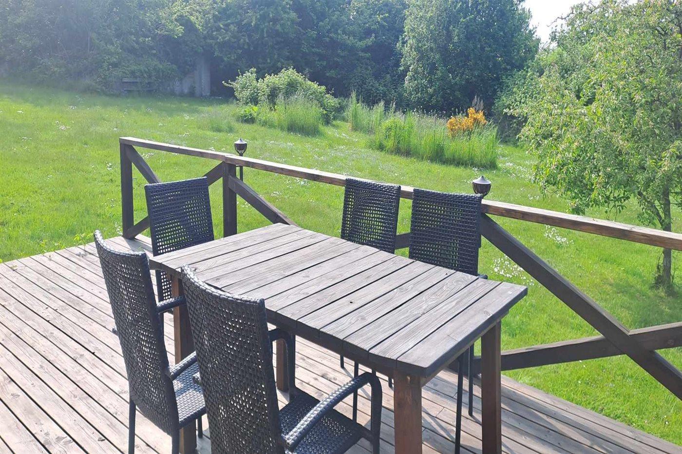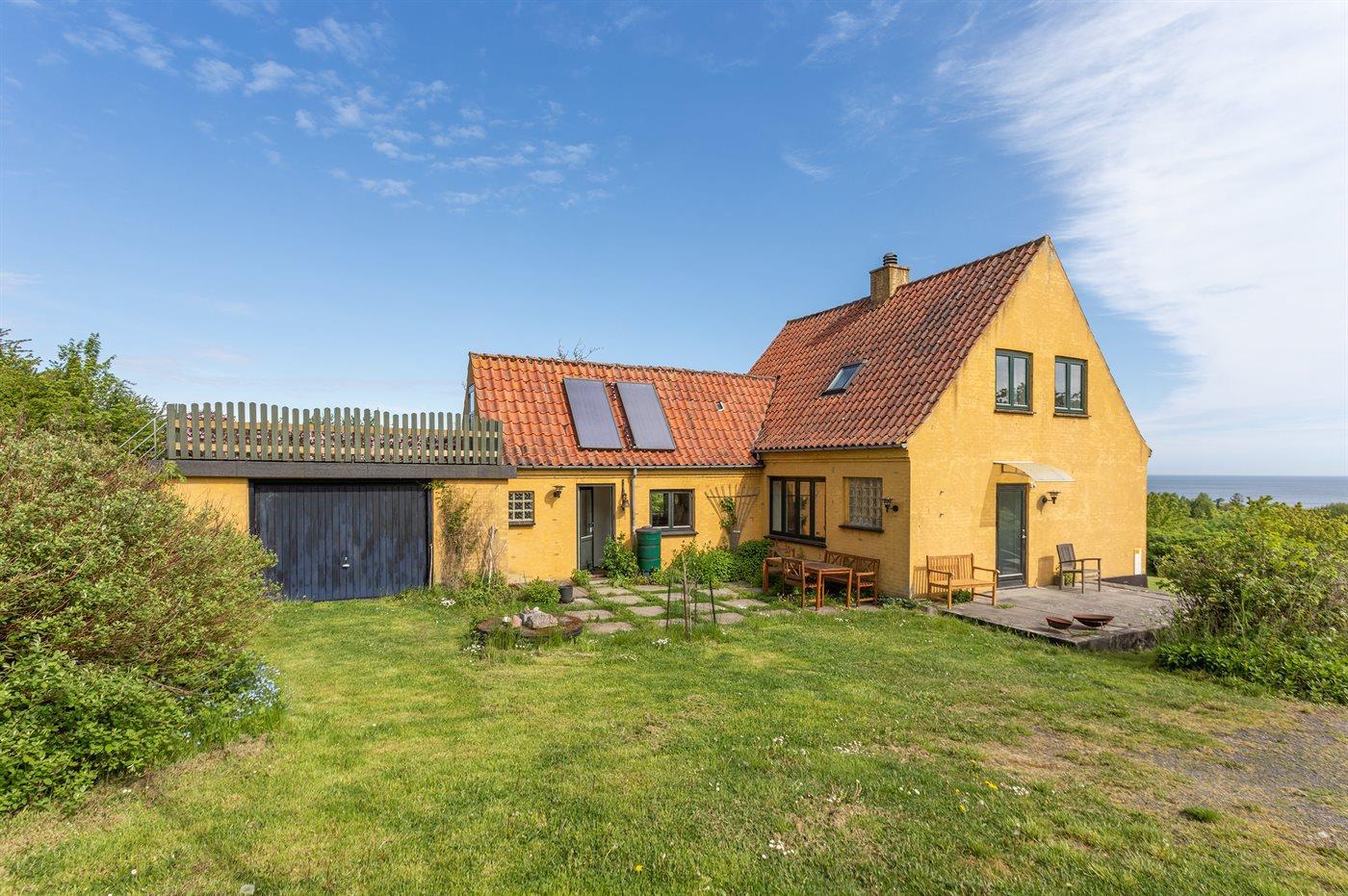 Smukt sommerhus med havudsigt, stor naturgrund og rolige terrasser nær Allinge på Bornholm.