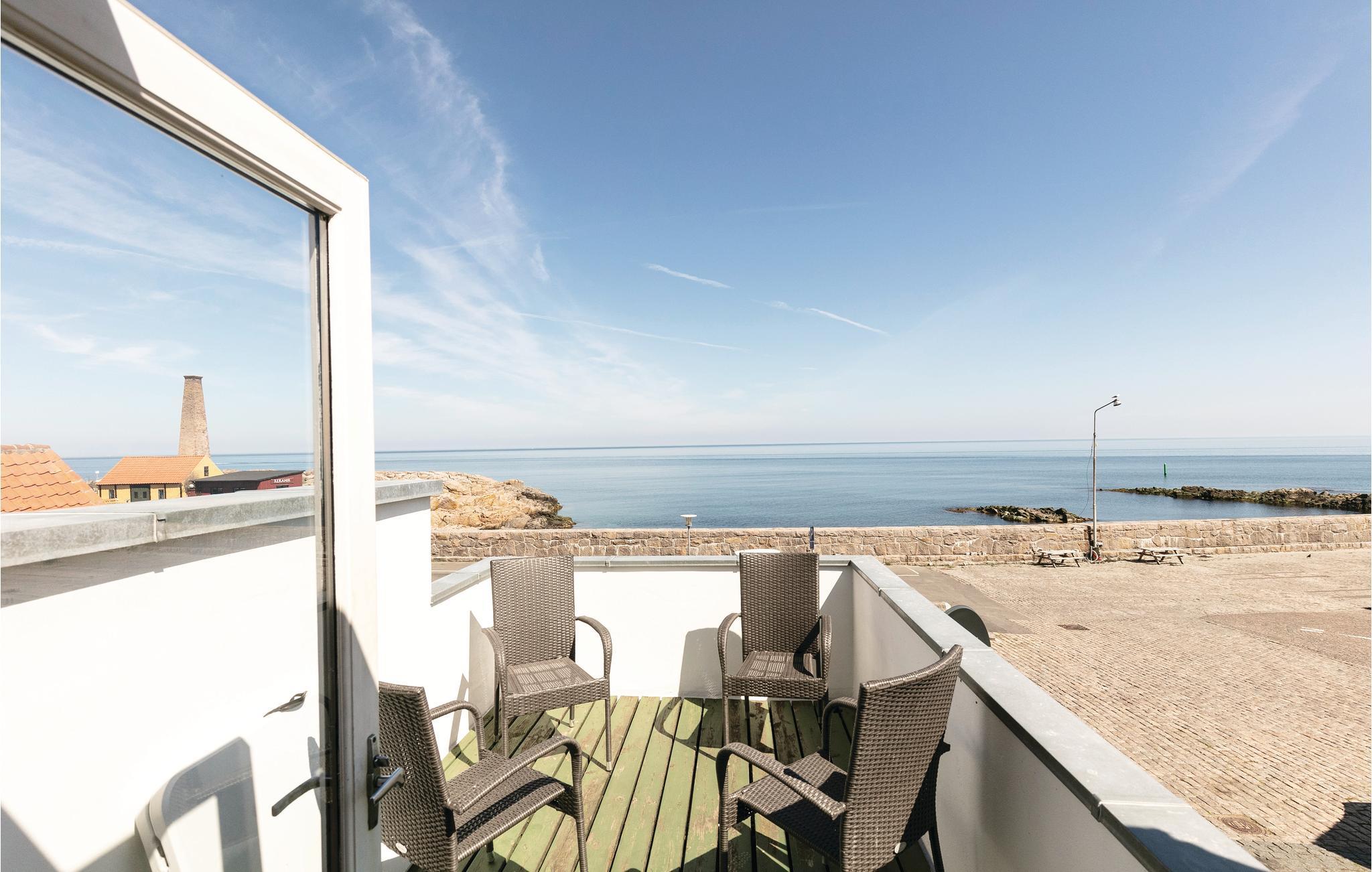 Hyggeligt byhus i Allinge med balkon og panoramaudsigt over havnen og Østersøen.