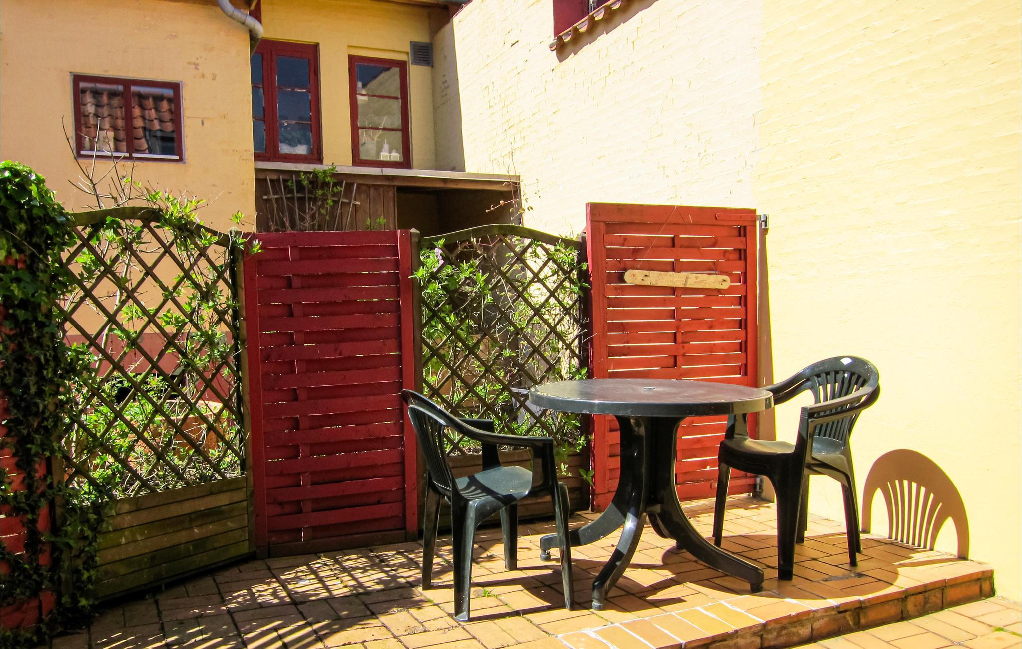 Udenfor kan I anvende den solrige fællesgård med havemøbler - det perfekte sted at nyde en kop kaffe.