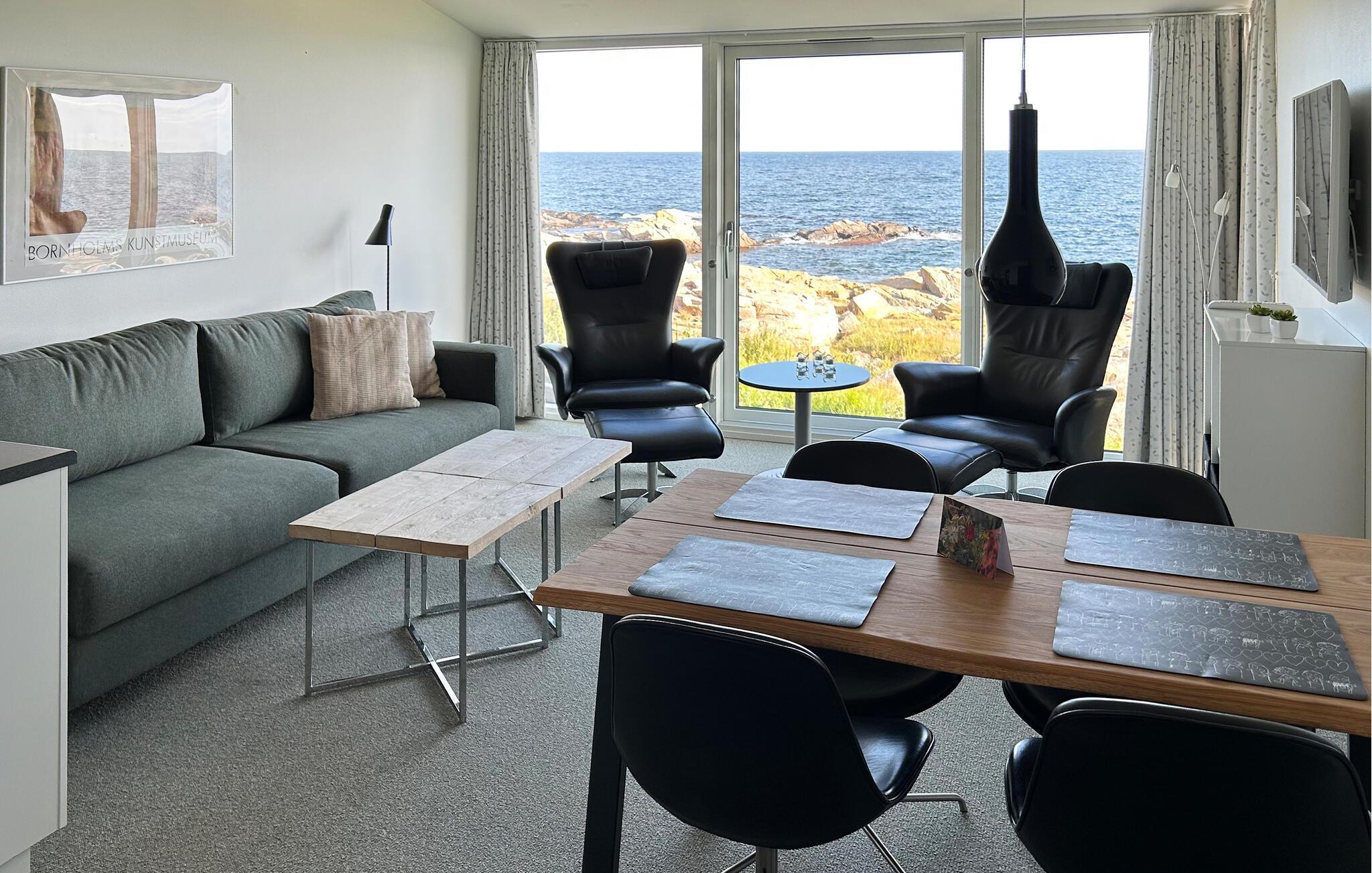Flot ferielejlighed med spa, storslået havudsigt og fantastisk beliggenhed ved kysten.