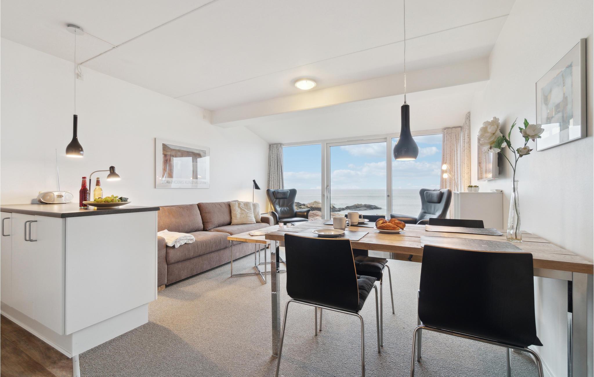 Velkommen til denne attraktive ferielejlighed. Lejlighedens hjerte er den attraktivt indrettede opholdsstue med en dobbelt sovesofa og et fladskærms-TV, hvor I kommer til at tilbringe mange hyggelige stunder. I åben forbindelse med opholdsstuen ligger det veludstyrede køkken, hvor I kan tilberede dejlige feriemåltider.