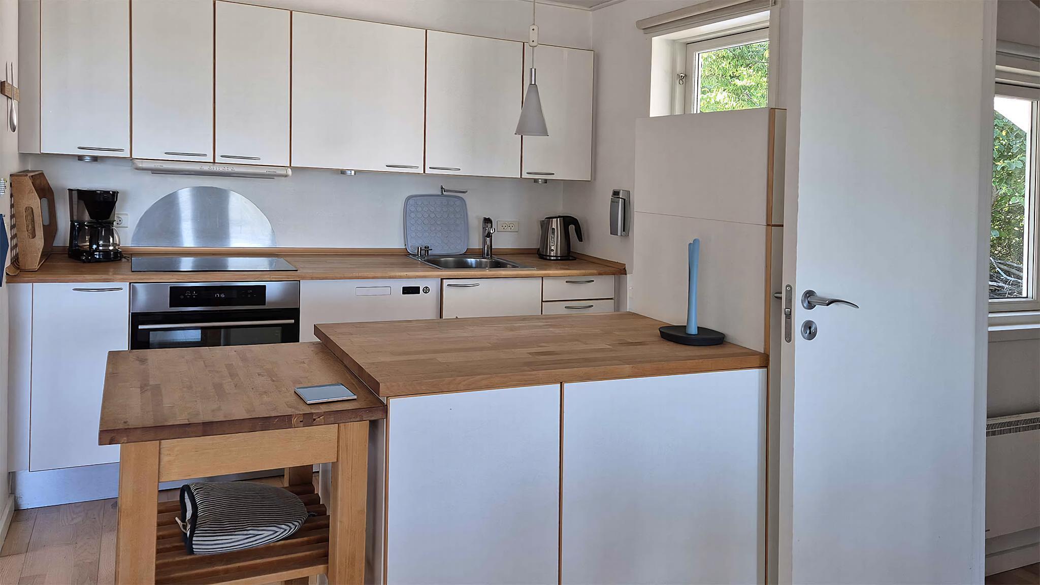 Dette sommerhus på 75 m² byder på den perfekte ramme for en skøn ferie på Nordbornholm, blot 400 meter fra klippekysten og en af Bornholms smukkeste sandstrande med den afslappede Sandkås Strandbar i nærheden. Huset rummer en lys og indbydende opholds- og spisestue i åben forbindelse med det veludstyrede køkken – ideelt til hyggelige feriedage. Der er plads til 6 personer fordelt på tre soveværelser, som hver er indrettet med to boksmadrasser (80 x 200 cm). Badeværelset har gulvvarme, bruseniche og kombineret vaskemaskine/tørretumbler. Sommerhuset er velisoleret, udstyret med energivenlige hårde hvidevarer og opvarmes/afkøles med varmepumpe, hvilket bidrager til et behageligt indeklima og lavere energiforbrug. Udendørs er der stor grund samt en delvist overdækket øst- og sydvendt træterrasse med havemøbler og gasgrill, der er p-plads til 2 biler og elbillader. Der er 200 m til offentlig transport. Underholdning: • Trådløst wifi • TV med bl.a. danske og tyske programmer samt Chromecast • DAB-radio med bluetooth, internetradio og Spotify • Inde- og udendørs spil, gynge samt bøger til både store og små Omegnen: Nordbornholm og Sandkås er et ideelt sted til et ferieophold, hvor natur, kunst, kultur, historie og afslapning går hånd i hånd. Området er kendetegnet ved sin barske natur med klipper, forrevne klippekyst, hyggelige småbyer, historiske attraktioner og en rolig atmosfære, som gør det perfekt til både aktive og afslappende ferier. Langs kysten løber den gamle redningssti, som er en af Bornholms smukkeste vandreruter. Du kan nemt følge den til fods til Allinge/Sandvig eller Tejn, som begge byder på shopping, indkøbsmuligheder, gode spisesteder i alle prisklasser. Bag huset ligger en vandre- og cykelsti med den smukke sprækkedal Storedalen og det nedlagte stenbrud Lundegårdsbrudet som afstikkere fra stien. Obs, udlejes ikke til erhversmæssigt brug.