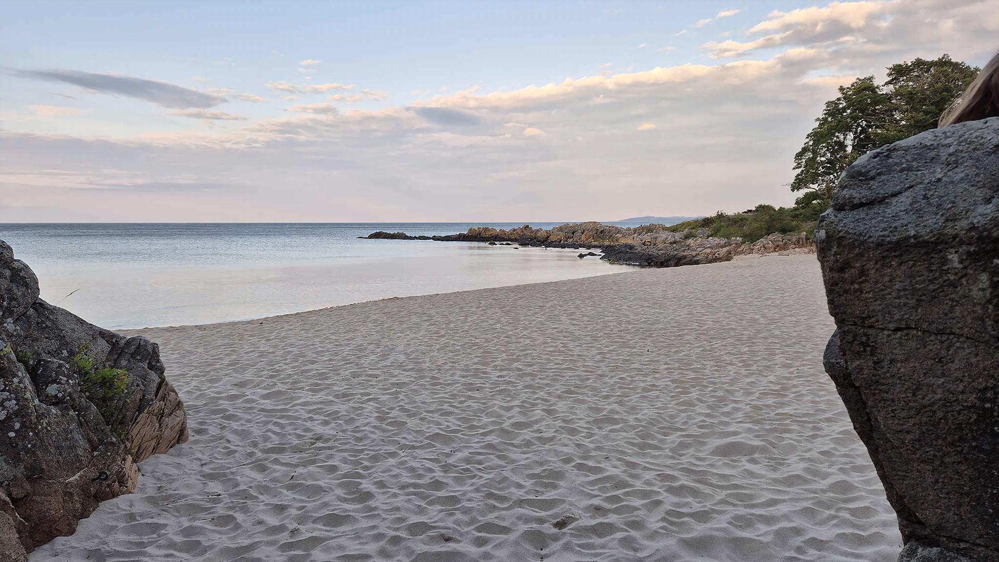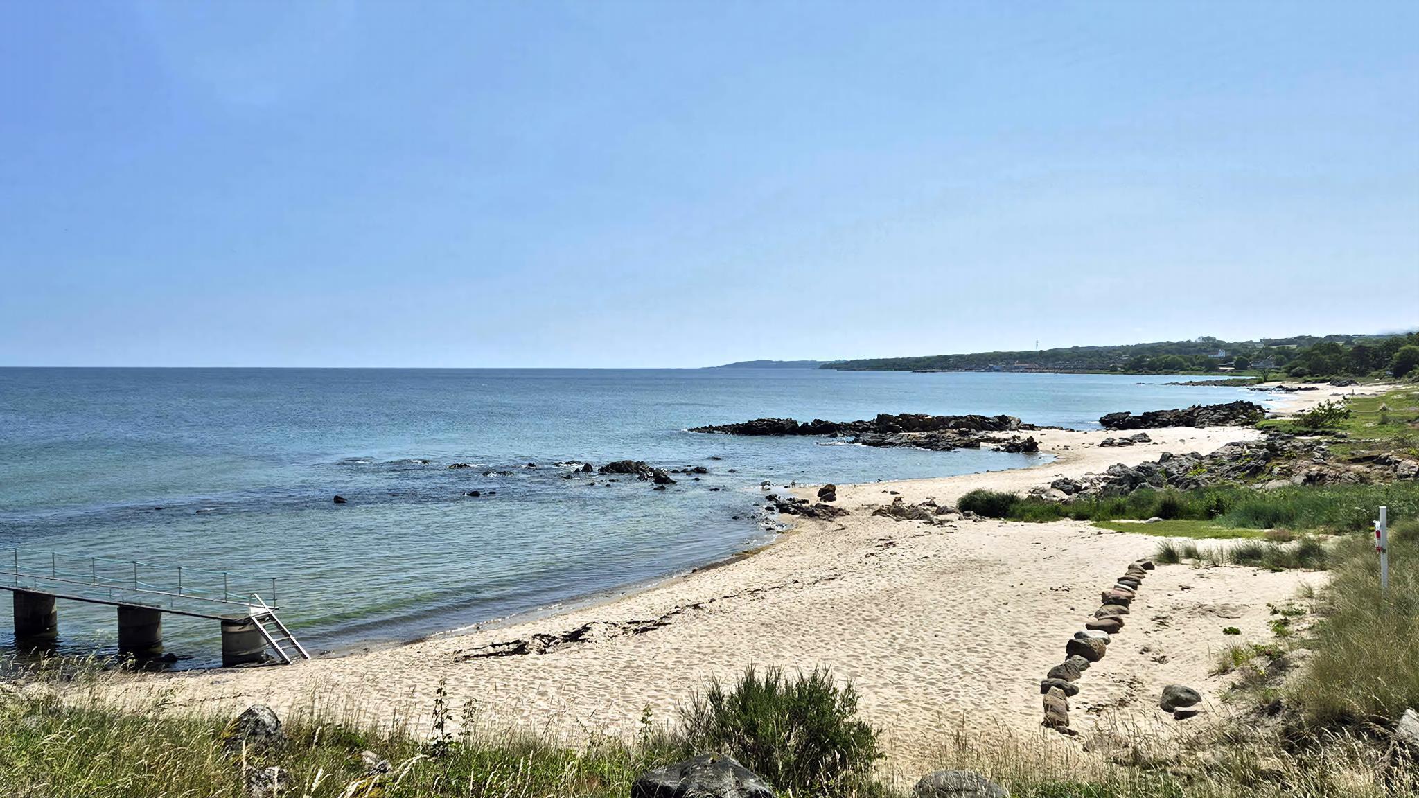 Sandkås med havudsigt, sandstrand og klipper