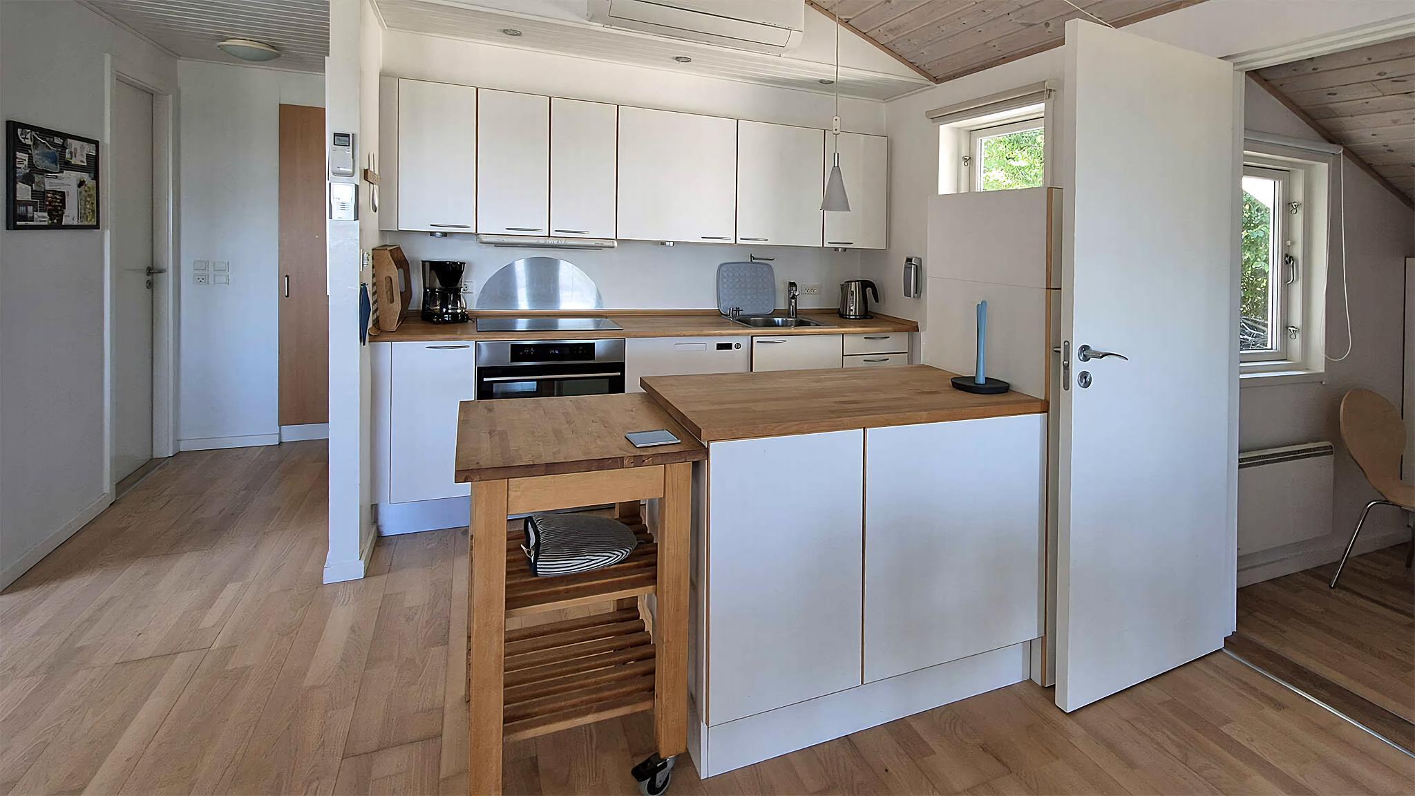 Dette sommerhus på 75 m² byder på den perfekte ramme for en skøn ferie på Nordbornholm, blot 400 meter fra klippekysten og en af Bornholms smukkeste sandstrande med den afslappede Sandkås Strandbar i nærheden. Huset rummer en lys og indbydende opholds- og spisestue i åben forbindelse med det veludstyrede køkken – ideelt til hyggelige feriedage. Der er plads til 6 personer fordelt på tre soveværelser, som hver er indrettet med to boksmadrasser (80 x 200 cm). Badeværelset har gulvvarme, bruseniche og kombineret vaskemaskine/tørretumbler. Sommerhuset er velisoleret, udstyret med energivenlige hårde hvidevarer og opvarmes/afkøles med varmepumpe, hvilket bidrager til et behageligt indeklima og lavere energiforbrug. Udendørs er der stor grund samt en delvist overdækket øst- og sydvendt træterrasse med havemøbler og gasgrill, der er p-plads til 2 biler og elbillader. Der er 200 m til offentlig transport. Underholdning: • Trådløst wifi • TV med bl.a. danske og tyske programmer samt Chromecast • DAB-radio med bluetooth, internetradio og Spotify • Inde- og udendørs spil og bøger til både store og små Omegnen: Nordbornholm og Sandkås er et ideelt sted til et ferieophold, hvor natur, kunst, kultur, historie og afslapning går hånd i hånd. Området er kendetegnet ved sin barske natur med klipper, forrevne klippekyst, hyggelige småbyer, historiske attraktioner og en rolig atmosfære, som gør det perfekt til både aktive og afslappende ferier. Langs kysten løber den gamle redningssti, som er en af Bornholms smukkeste vandreruter. Du kan nemt følge den til fods til Allinge/Sandvig eller Tejn, som begge byder på shopping, indkøbsmuligheder, gode spisesteder i alle prisklasser. Bag huset ligger en vandre- og cykelsti med den smukke sprækkedal Storedalen og det nedlagte stenbrud Lundegårdsbrudet som afstikkere fra stien. Obs, udlejes ikke til erhversmæssigt brug.