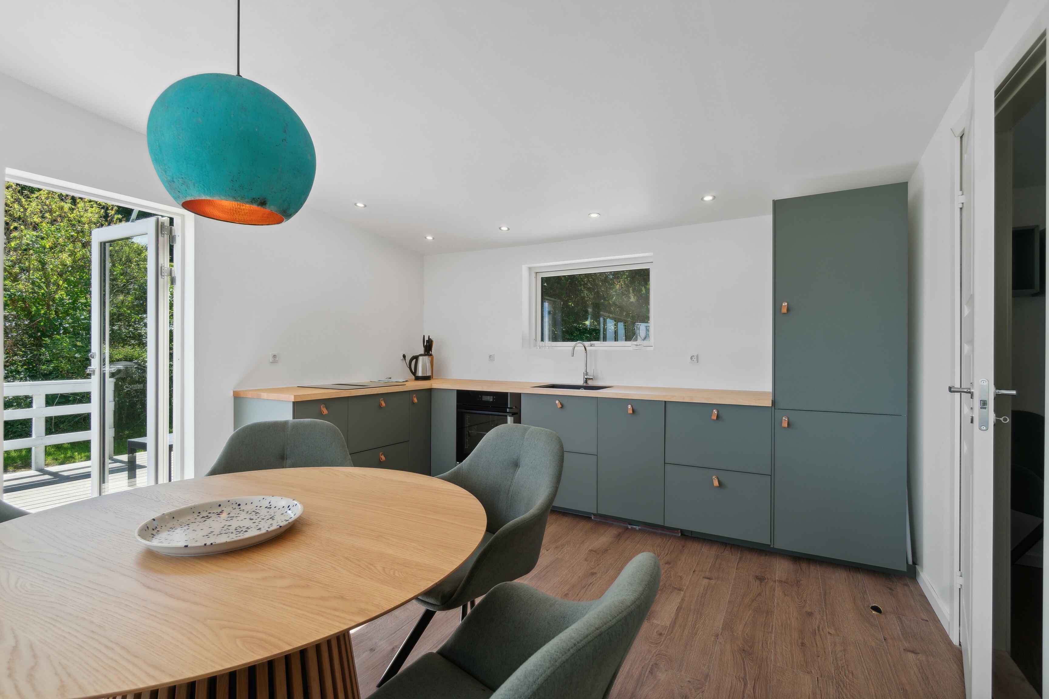 Dette charmerende sommerhus på 54 m², beliggende i den idylliske by Allinge på Bornholm, tilbyder en enestående ramme for en afslappende og uforglemmelig ferie. Med kun 500 meter til den nærmeste strand er dette feriehus et ideelt valg for dem, der elsker at tilbringe tid ved havet. Den korte gåtur til stranden gør det nemt at nyde en dukkert i det klare vand, solbade på de hvide sandstrande eller bare nyde de fredfyldte omgivelser og lyden af bølgerne, der slår mod kysten. Sommerhuset har plads til seks personer, hvilket gør det perfekt for familier, venner eller par, der ønsker at nyde en ferie sammen. De komfortable sovepladser er fordelt på flere værelser, hvilket sikrer både privatliv og plads nok til alle. Huset er indrettet med henblik på at skabe en hyggelig og afslappende atmosfære, så I kan føle jer hjemme fra det øjeblik, I træder ind. Fra sommerhuset kan I nyde en fantastisk udsigt, der strækker sig over det naturskønne landskab og det glitrende hav. Denne betagende udsigt kan nydes både indendørs og udendørs, hvor terrassen er det perfekte sted at sidde med en kop kaffe om morgenen eller et glas vin om aftenen, mens I ser solen gå ned. Den store terrasse indbyder også til udendørs måltider og hyggelige grillaftener med familien. Indretningen af huset er både praktisk og stilfuld, med moderne faciliteter, der sikrer et behageligt ophold. Det fuldt udstyrede køkken gør det muligt at tilberede lækre måltider, som kan nydes i den hyggelige spisestue eller ude på terrassen. Stuen er indrettet med komfortable møbler og tilbyder et dejligt sted at slappe af efter en dag fyldt med oplevelser. Her kan I samles omkring brændeovnen på kølige aftener, se en film eller spille spil sammen. Allinge og Bornholm byder på et væld af aktiviteter og oplevelser for alle aldre. Fra sommerhuset er der nem adgang til naturskønne vandrestier, cykelruter og smukke udsigtspunkter. I kan også besøge de lokale seværdigheder som Hammershus, Nordeuropas største borgruin, eller tage en tur til de charmerende byer med deres unikke butikker, caféer og restauranter. Uanset om I ønsker at tilbringe jeres ferie med at udforske øens mange seværdigheder, nyde naturen eller bare slappe af ved stranden, vil dette sommerhus i Allinge være den perfekte base for jeres ophold. Her kan I skabe minder, der vil vare livet ud, og vende hjem med fornyet energi og masser af gode oplevelser i bagagen.