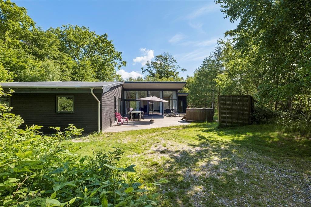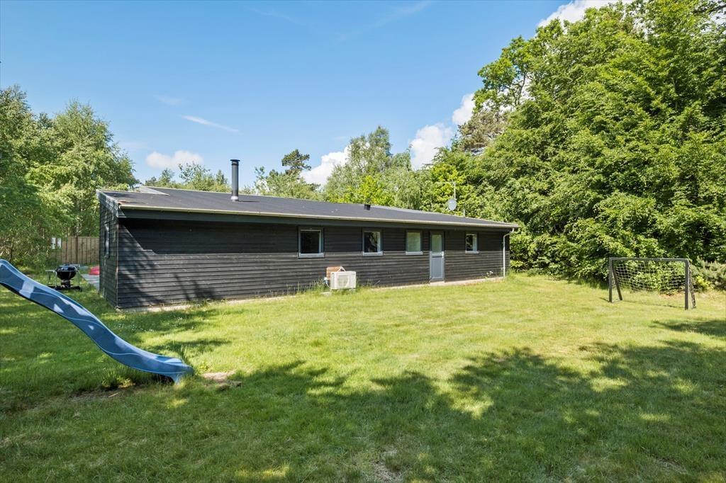 Solskinstimerne kan I oplagt nyde på den 3400 m2 store grund, der omkranses af flotte løvtræer. Til børnene er der gynger og andre legefaciliteter, og I har god plads til at boltre jer på græsplænen. I skal også huske at afsætte tid til at slappe af på den store træterrasse, der ligger sydvest for sommerhuset. Her er der liggestole, parasol og sågar et vildmarksbad til de rolige stunder, og hvis I vil grille og spise aftensmad ude i det fri, er der siddepladser ved havebordene til alle.