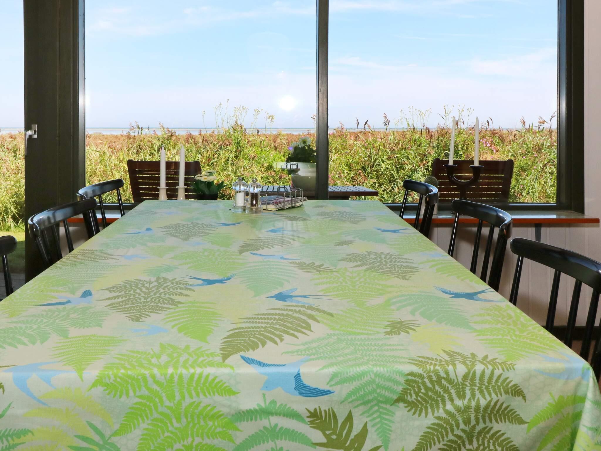 Indenfor rammer den lyse stue med store vinduer panoramaudsigten over havet og skaber en smuk kulisse, uanset om du slapper af ved brændeovnen eller samles omkring spisebordet. Det åbne køkken er fuldt udstyret med alt, hvad du har brug for, inklusive opvaskemaskine, hvilket gør måltiderne nemme og sociale. Huset har tre soveværelser – to med dobbeltsenge og et med to enkeltsenge – der giver komfortable plads til op til seks gæster.