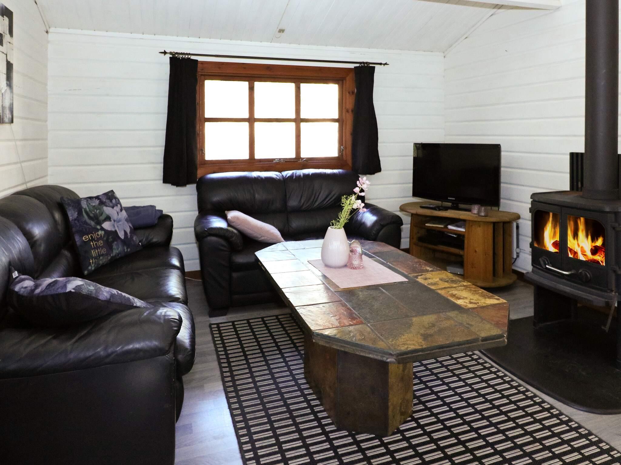 1 Opholdsstue: Brændeovn, radio, stereoanlæg med cd, tv