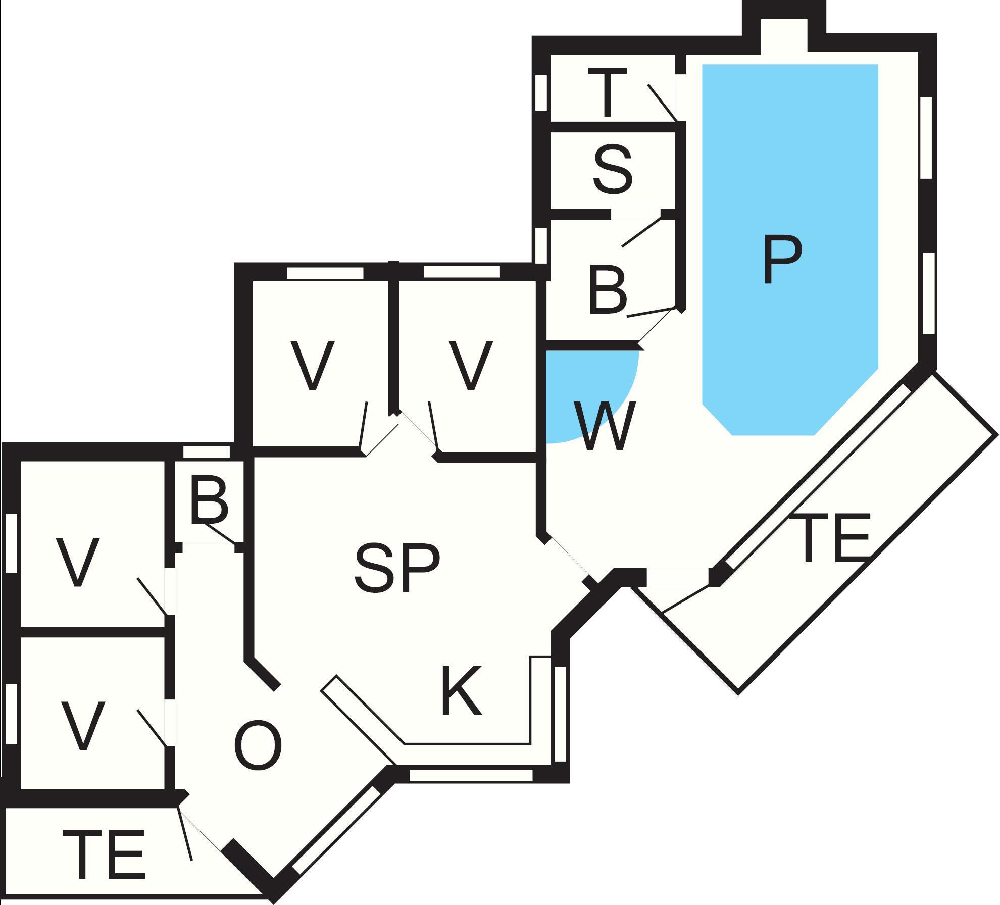 Samlingspunktet for hele familien vil helt sikkert være den 43 m² store poolafdeling, hvor der Spa og 23 m² swimmingpool. Bemærk ingen trappe ned til poolen. Badeværelse med bruser, toilet og adgang til sauna.
