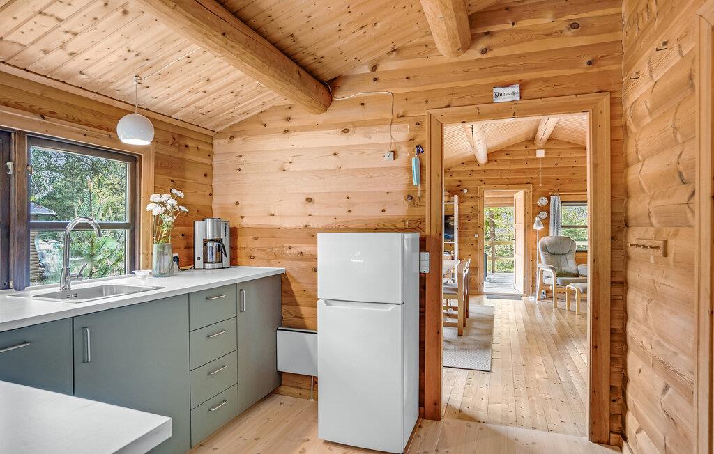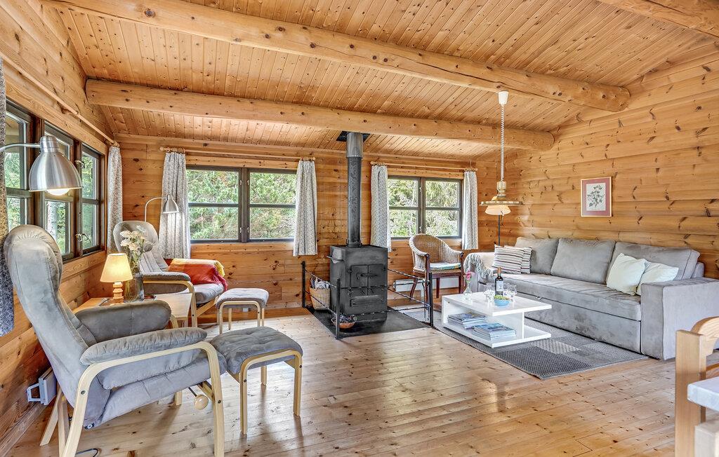 Dette træhus venter på dig på en idyllisk naturgrund nær Als Odde Strand. Husets hjerte er stuen med adgang til den smukke terrasse med udsigt over vandet. Slap af her efter en lang dag i naturen foran brændeovnen og glem alt om hverdagen. Det lange spisebord i opholdsstuen er ideelt til hyggelige middage eller spilaftener. Der er også to soveværelser med en dobbelt- og køjeseng og et badeværelse.