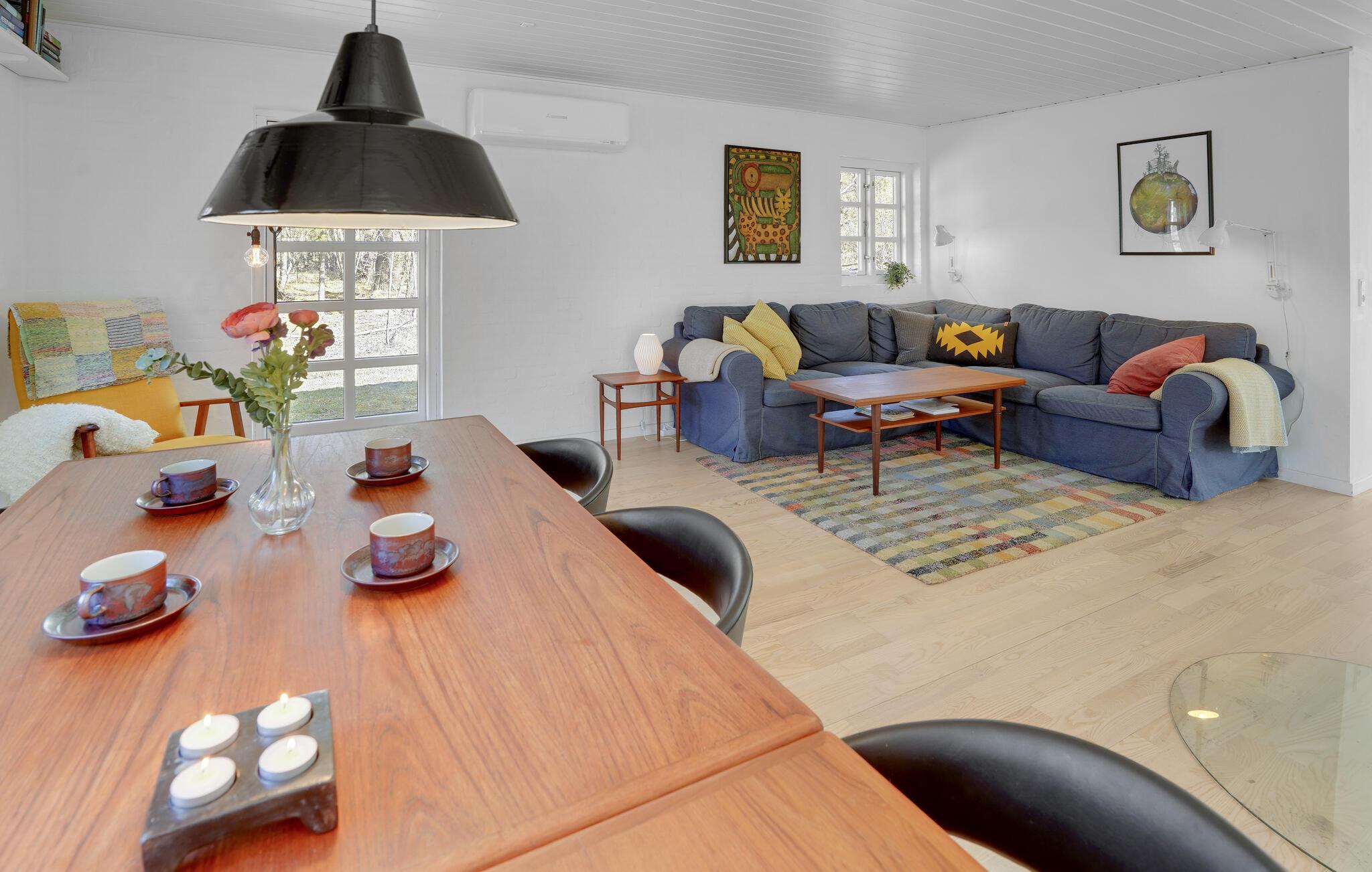 Huset er lyst og hyggeligt indrettet, så I får en skøn base, uanset om I vælger at holde ferie her i sommer- eller vinterhalvåret. Husets hjerte er opholdsstuen med et behageligt sofahjørne, spiseplads og åbent køkken. Sæt jer til rette foran pejsen, eller afslut dagen med en lækker middag.