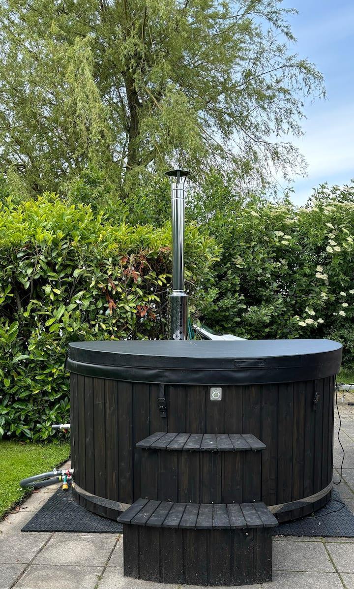 Huset ligger i Skovmose, og her kan I slappe af i det skønne vildmarksbad og nyde de grønne omgivelser, måske efter en dejlig gåtur til stranden, der kun ligger 500 meter væk.