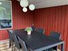 Huset ligger på en stor grund, og her er en dejlig overdækket terrasse på 15 m2, hvor I kan nyde udelivet.