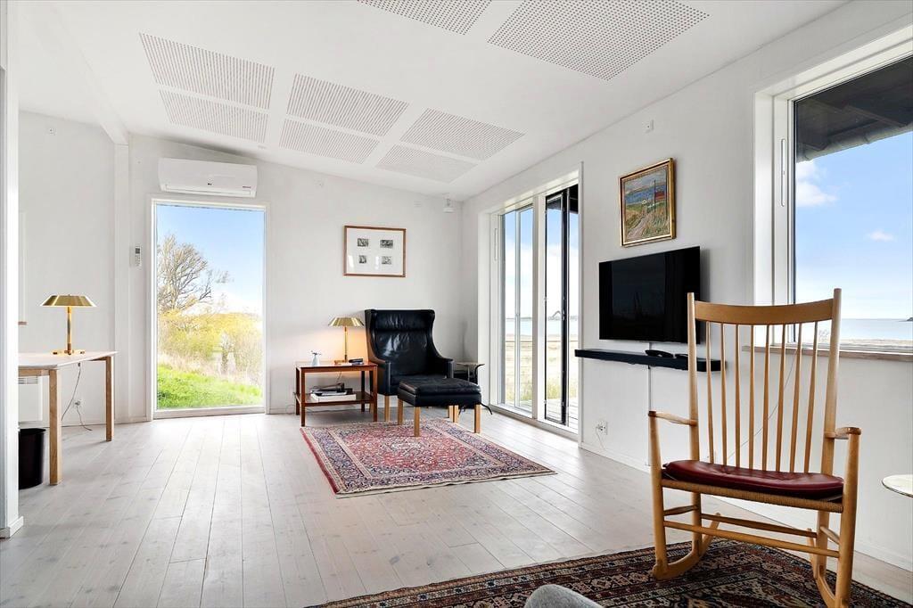 Velkommen til et charmerende og indbydende sommerhus, hvor der er kræset for detaljerne. Her er plads til 4 personer og jeres trofaste hund, så hele familien kan være samlet. Indretningen er lys, moderne og afslappet – med store vinduer, der inviterer den betagende panoramaudsigt over Stauns fjord helt ind i stuen. Denne udsigt er helt unik, og det kan være svært at løsrive sig fra den. Heldigvis kan du nyde udsigten når du sidder i stuen og ved spisebordet. Huset har en både flot og moderne indretning og brændeovnen i stuen tænder helt op for hyggen. Huset er lyst, så du føler dig hurtigt godt til rette her. Køkkenet er veludstyret og i badeværelset finder du også vaskemaskine og tørretumbler, så det praktiske er også på plads. Huset emmer af hygge og komfort med fokus på den helt særlige beliggenhed midt i Samsøs smukke natur. Med oplader til din elbil er det hele gjort nemt for jer fra start til slut.