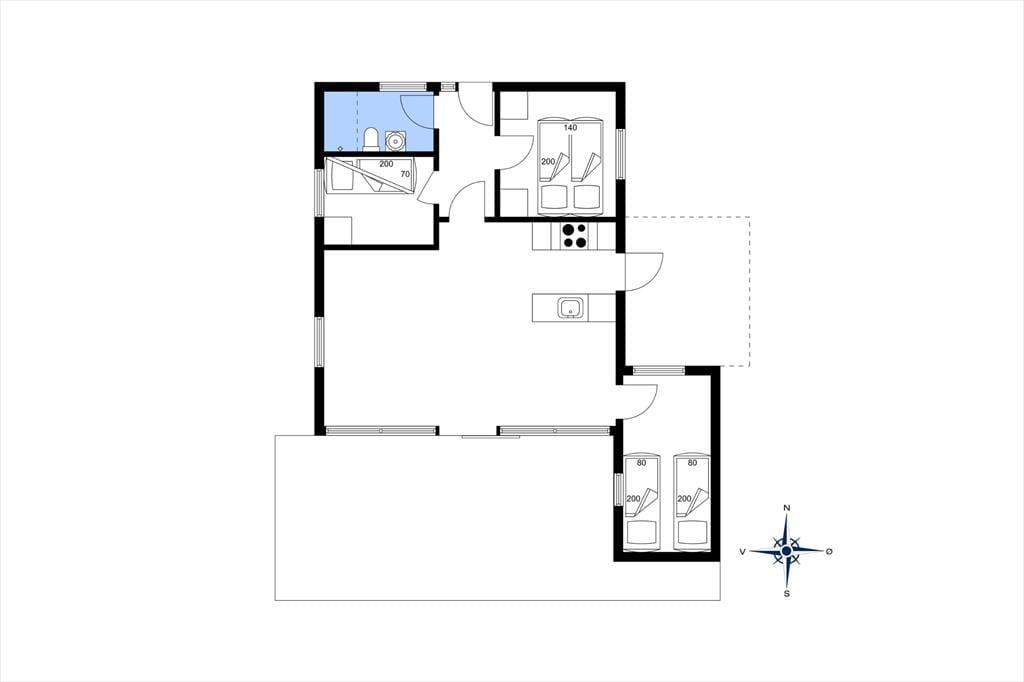 Sommerhuset er velholdt og her er nogle hyggelige rum. Her er e gode soveværelser. Det ene med 1 dobbeltseng, det andet med 1 ¾ dobbeltseng og set sidste med køjeseng. Badeværelset er med bruseniche. Huset har derudover et nyere lyst køkken med opvaskemaskine, og ligger i åben forbindelse med stuen. Her er der en god spiseplads med udsigt over haven. I stuen er der lyse møbler og mange gode siddepladser. Her er store vinduer og udgang til dejlig overdækket terrasse.