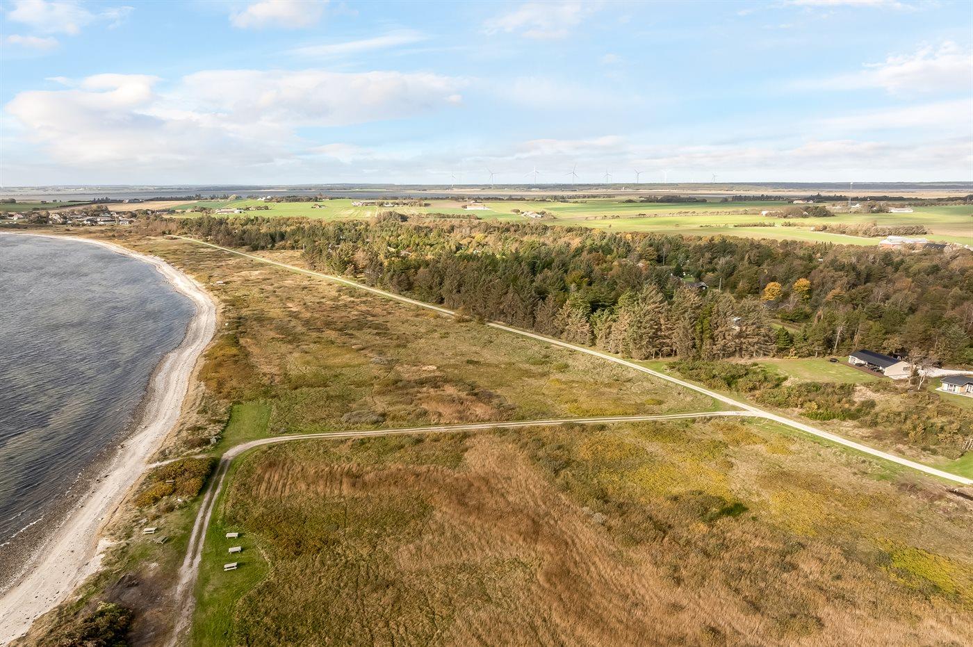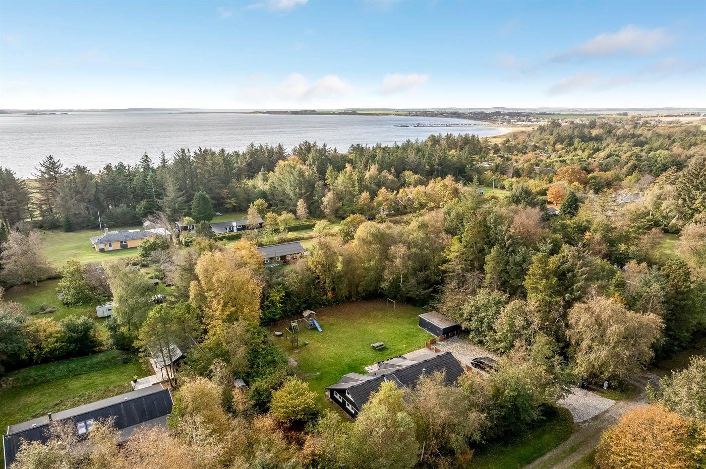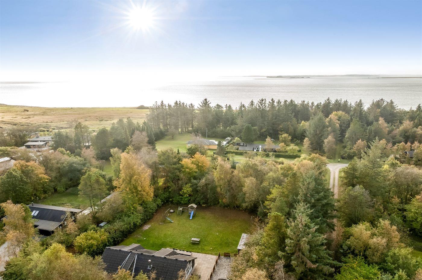 Ferieboligen er beliggende på en 1800 m² stor naturgrund. Der er 15000 m til havet. Der er 300 m til fjorden. Nærmeste forretning er beliggende i en afstand af 700 m. Til ferieboligen hører 100 m² terrasseareal. Gynge. Sandkasse. Grill til rådighed. Der er installeret stik til opladning af elbil. Parkering ved ferieboligen.