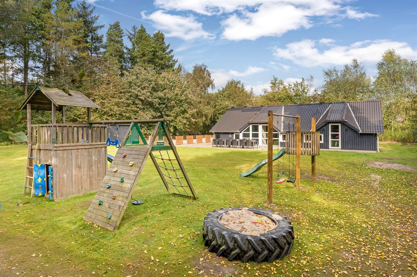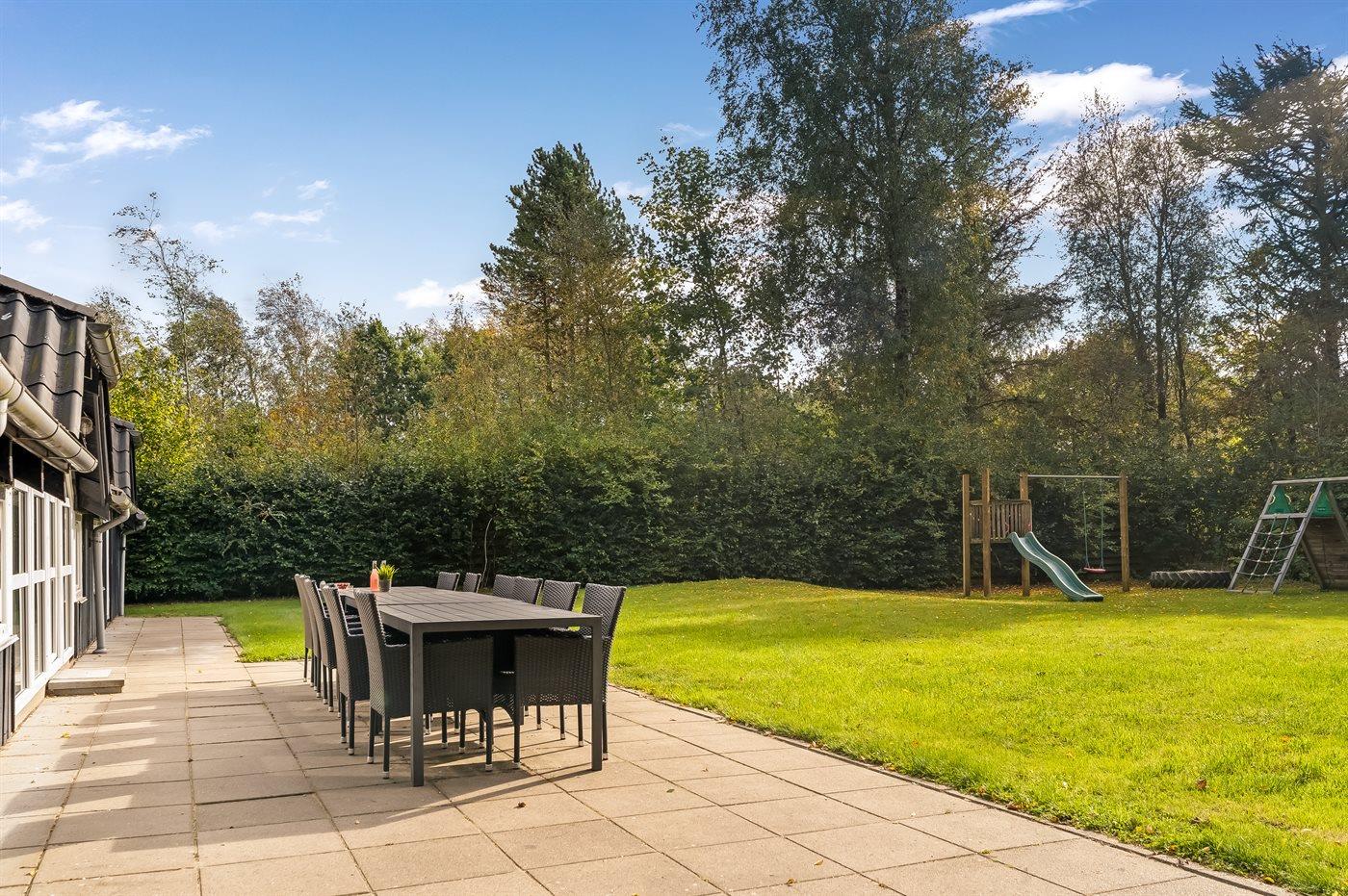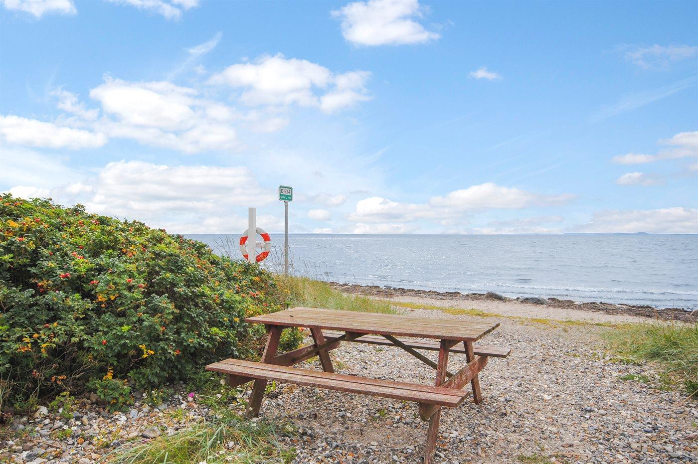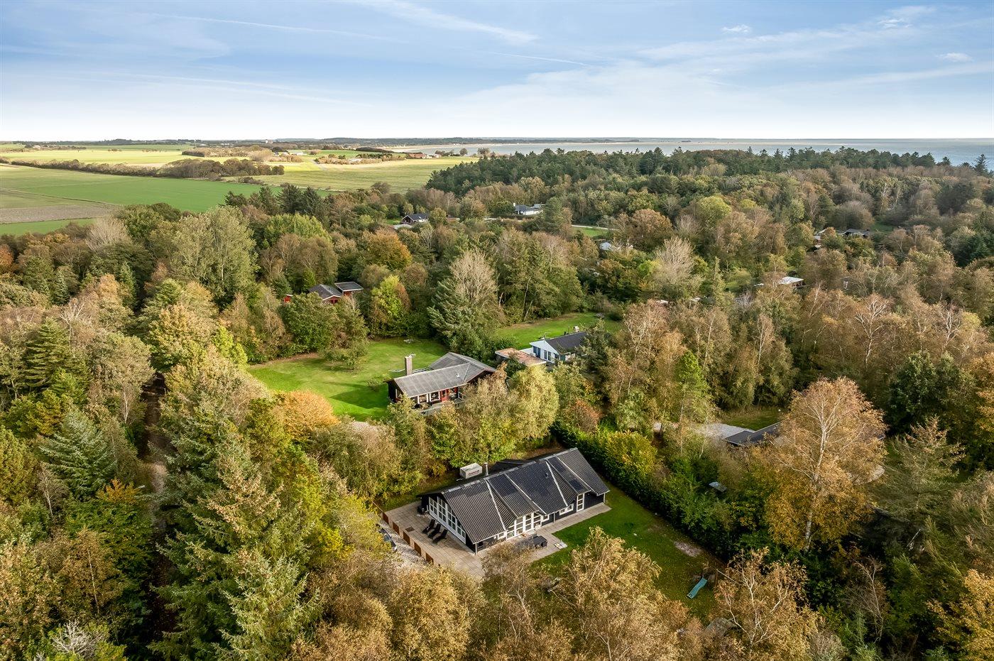 Ferieboligen er beliggende på en 1800 m² stor naturgrund. Der er 15000 m til havet. Der er 300 m til fjorden. Nærmeste forretning er beliggende i en afstand af 700 m. Til ferieboligen hører 100 m² terrasseareal. Gynge. Sandkasse. Grill til rådighed. Der er installeret stik til opladning af elbil. Parkering ved ferieboligen.