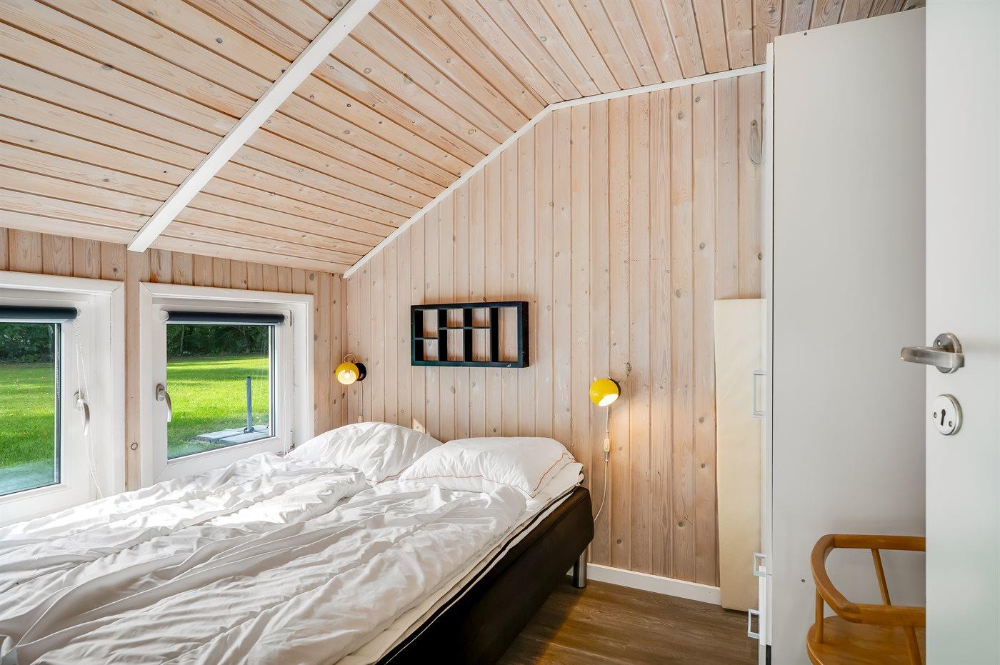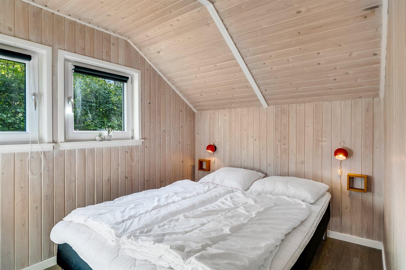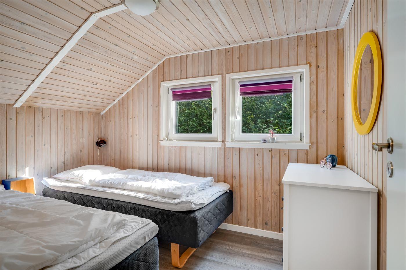 Der er i alt 4 soveværelser. Sovepladserne fordeler sig på: 8 sovepladser i dobbeltsenge. 2 sovepladser i enkeltsenge. 2 af disse sovepladser fordeler sig på 2 hemse. Derudover er der 1 stk. barneseng.