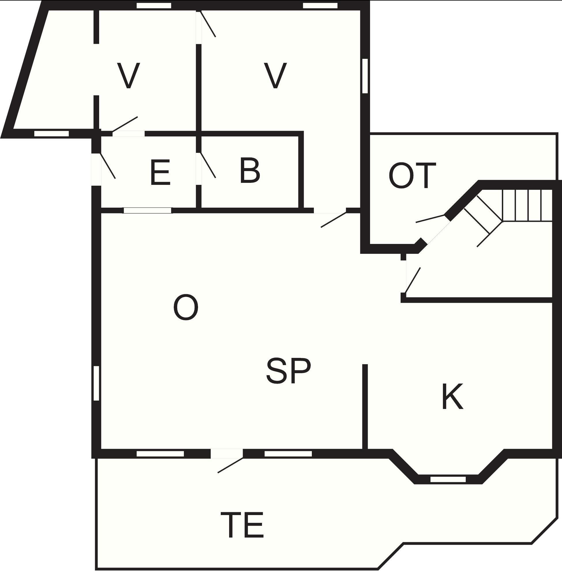 1 Opholdsstue: Brændeovn, radio, dvd-afspiller, Chromecast, tv