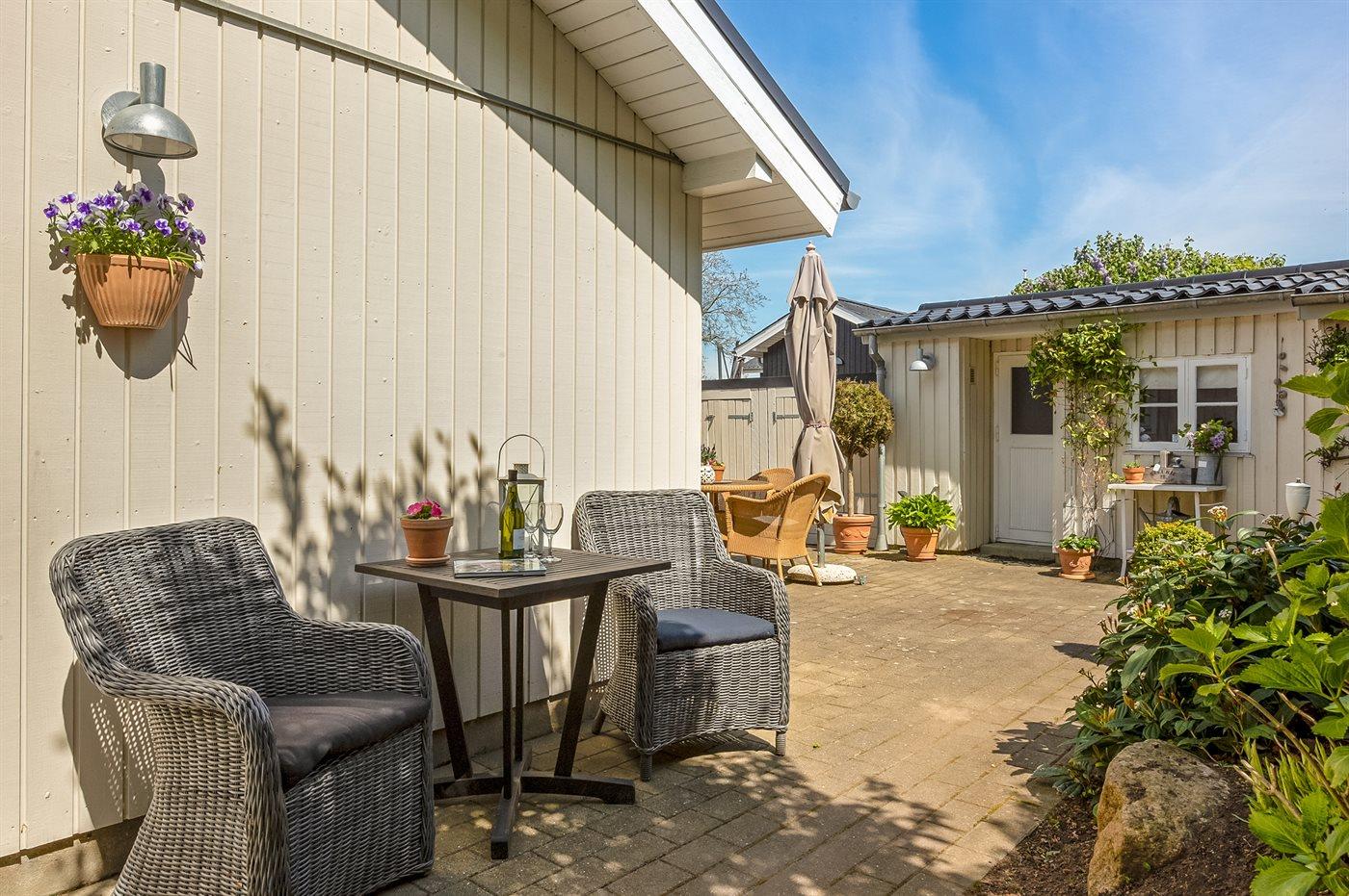 Ferieboligen er beliggende på en 509 m² stor havegrund. Der er 50 m til fjorden. Nærmeste forretning er beliggende i en afstand af 3000 m. Til ferieboligen hører 30 m² terrasseareal. Desuden er der 12 m² overdækket terrasse. Der er carport til rådighed. Parkering ved ferieboligen.