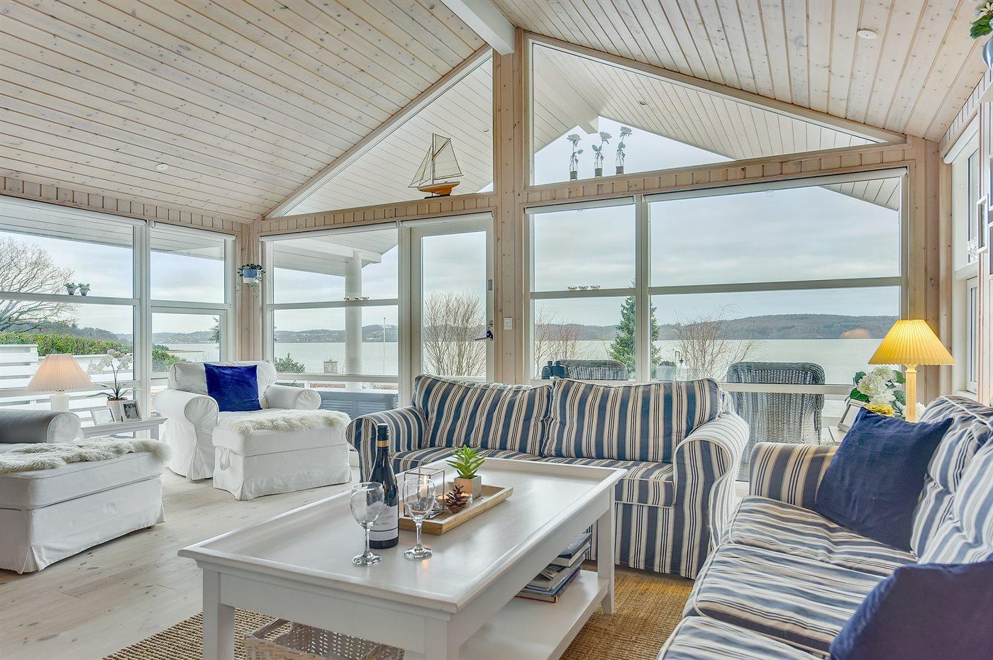 Flot og velholdt sommerhus med en hyggelig indretning beliggende lige ved vandet med en helt fantastisk panorama udsigt over Vejle Fjord, som kan nydes både fra de skønne terrassearealer samt inde fra huset.