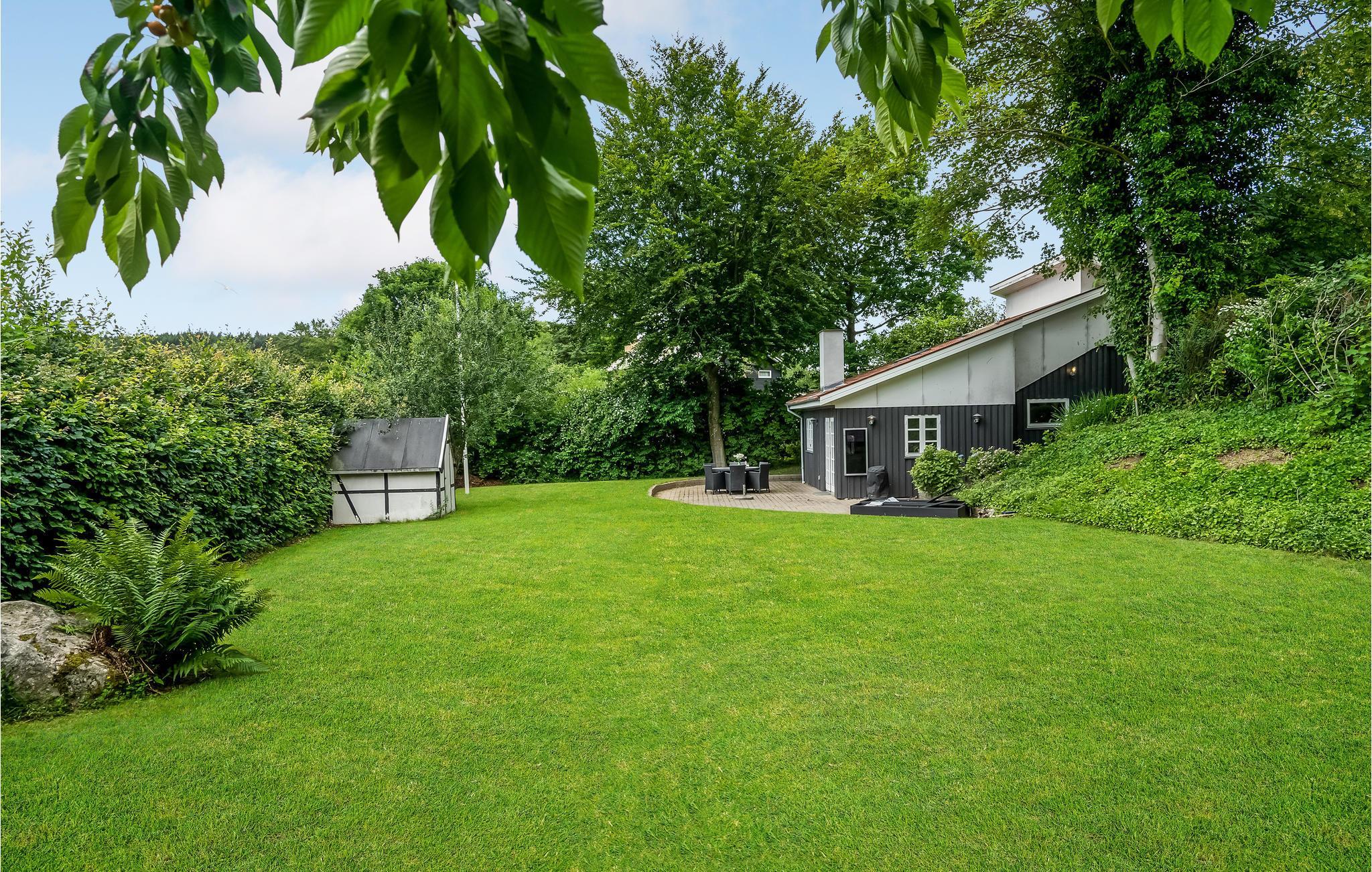Dette skønne sommerhus ligger i et roligt område tæt på en skov. Huset er lyst og hyggeligt indrettet, så her får I nogle herlige rammer til at lade op mellem alle oplevelserne, der venter ude i Trekantområdet. I efterårssæsonen kan I nyde udsigten til haven fra stuen, mens ilden buldrer stemningsfuldt i den integrerede pejs.