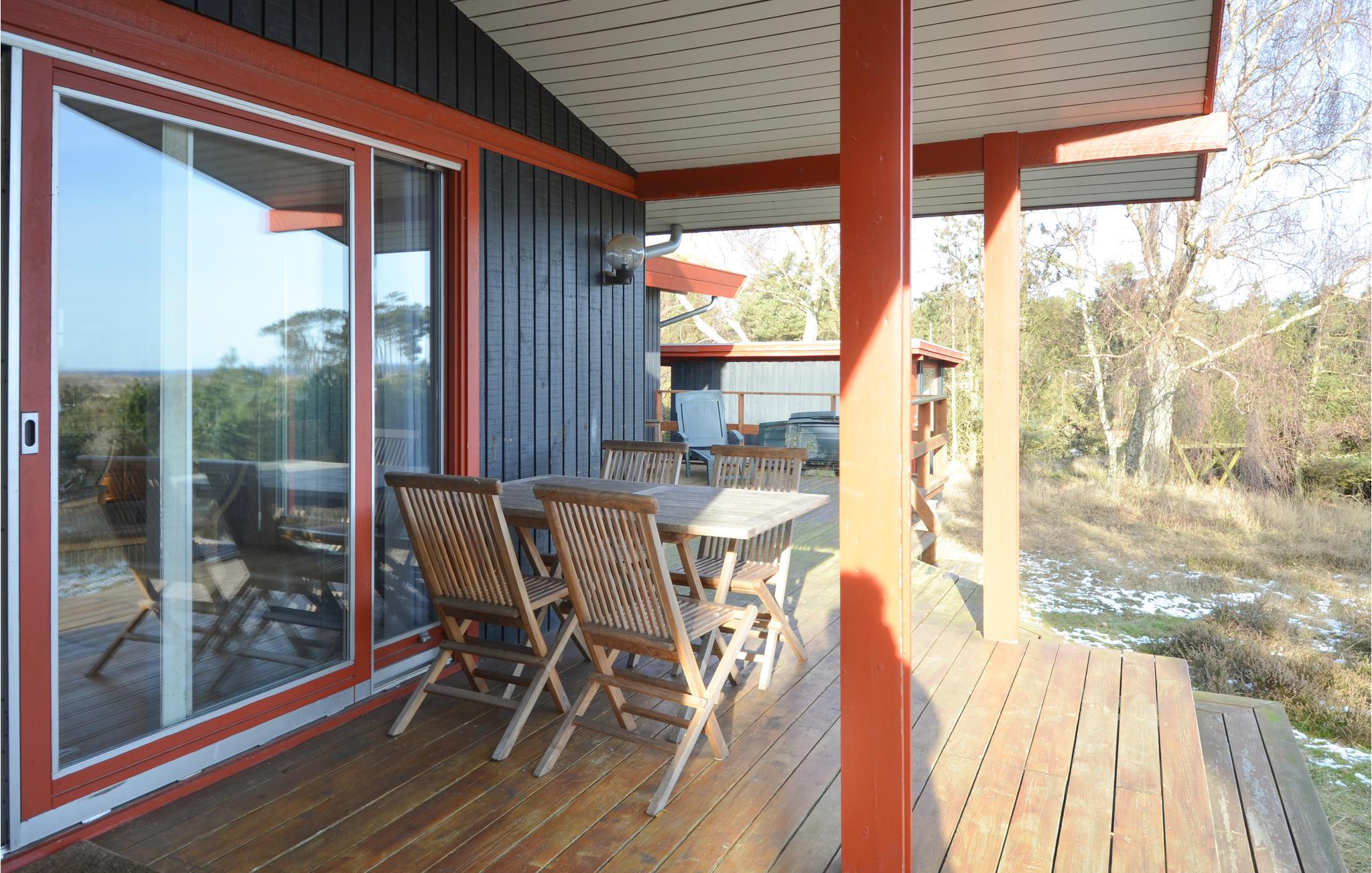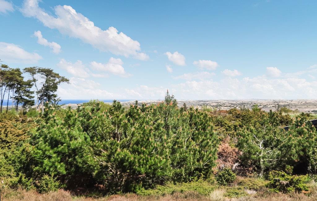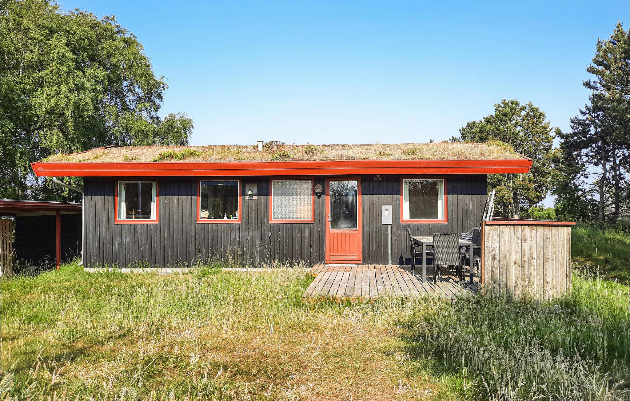 Charmerende træhus på Anholt med panoramaudsigt over Kattegat og Ørkenen, perfekt til en afslappende ferie.