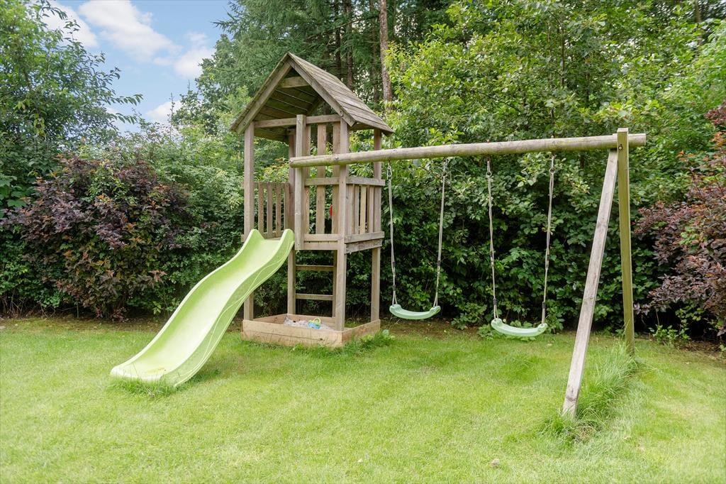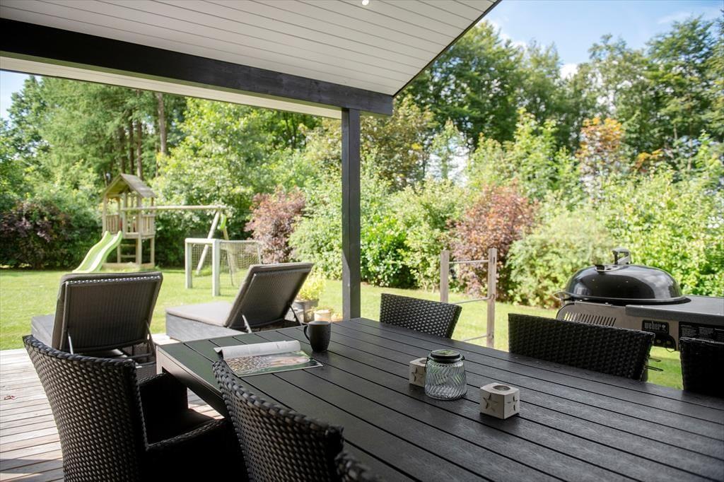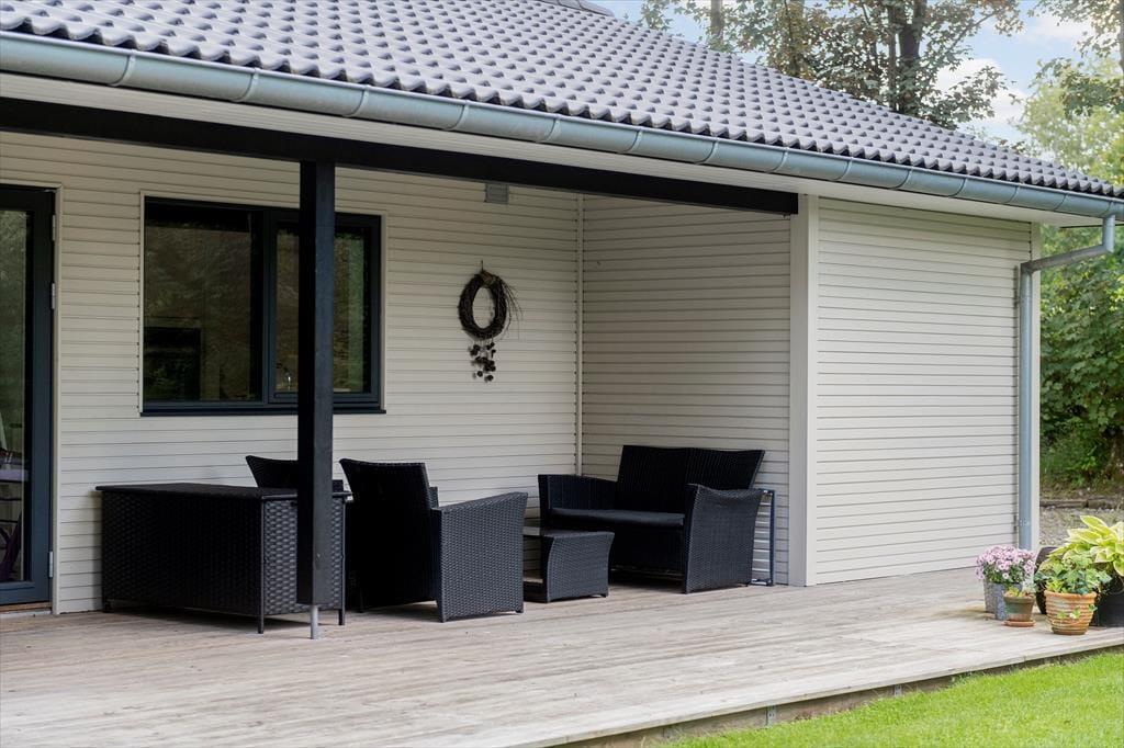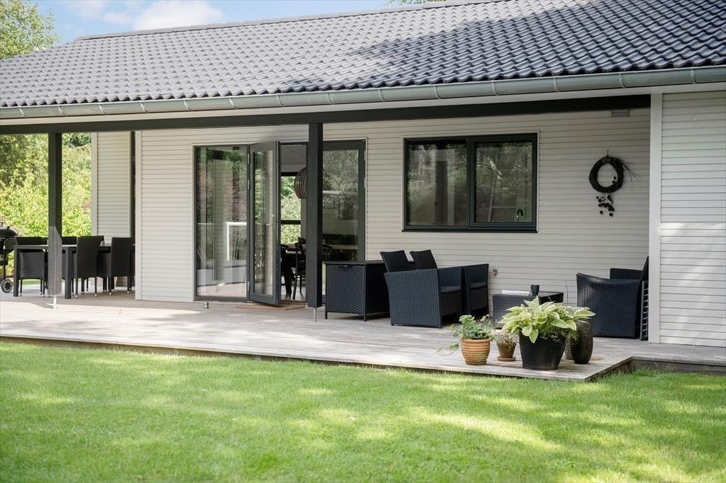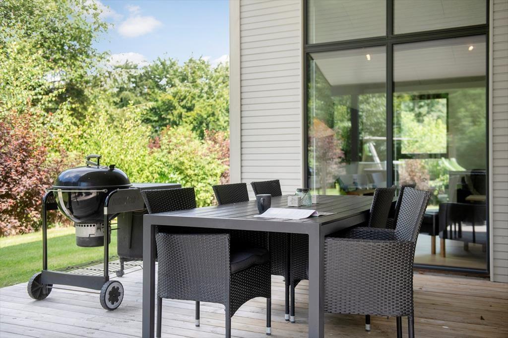 En flot træterrasse går hele vejen rundt om sommerhuset, og særligt mod syd breder den sig ud med både åbne og overdækkede opholdspladser. Havemøblerne er af god kvalitet, og der er en grill til rådighed, hvis du får lyst til at kokkerere i det fri. Til børnene er der legestativ, sandkasse og fodboldmål i den grønne, lukkede have – og hvis det ikke er rigeligt, kan hele familien hygge sig med de mange gode aktivitetsmuligheder i Arrild Ferieby.