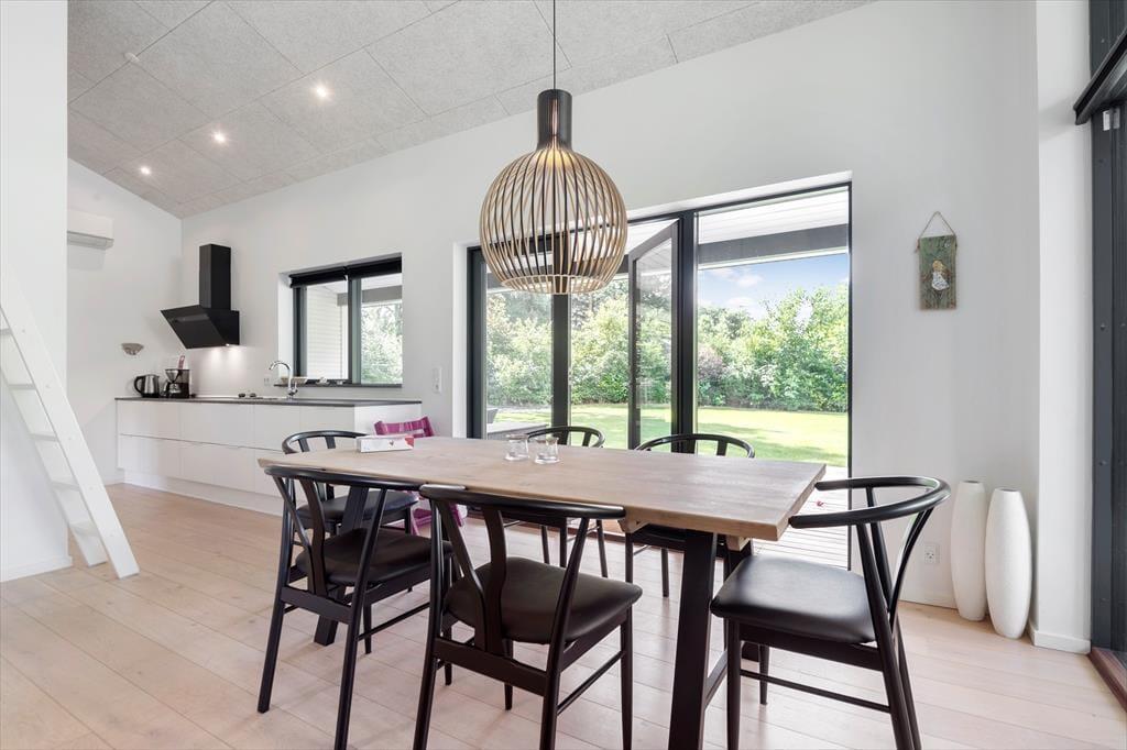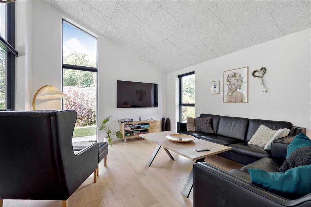 Det 86 m² store murstenshus er et gedigent byggeri fra 2020. Inden døre er der hvide vægge, pæne gulve og loft til kip, og det moderne møblement sørger for, at du får det både godt og komfortabelt inden døre. På de tre soveværelser er der sengepladser til syv personer, og fra stuen har du adgang til en hyggelig hems – måske bliver den børnenes yndlingsplads, når de vil lege eller læse tegneserier? I stuen har du god plads til at samles for at spille brætspil og se film i sofaafdelingen, og når du har lavet lækker mad i det åbne køkken, indbyder spisebordet til lange middage med gode hyggesnakke.