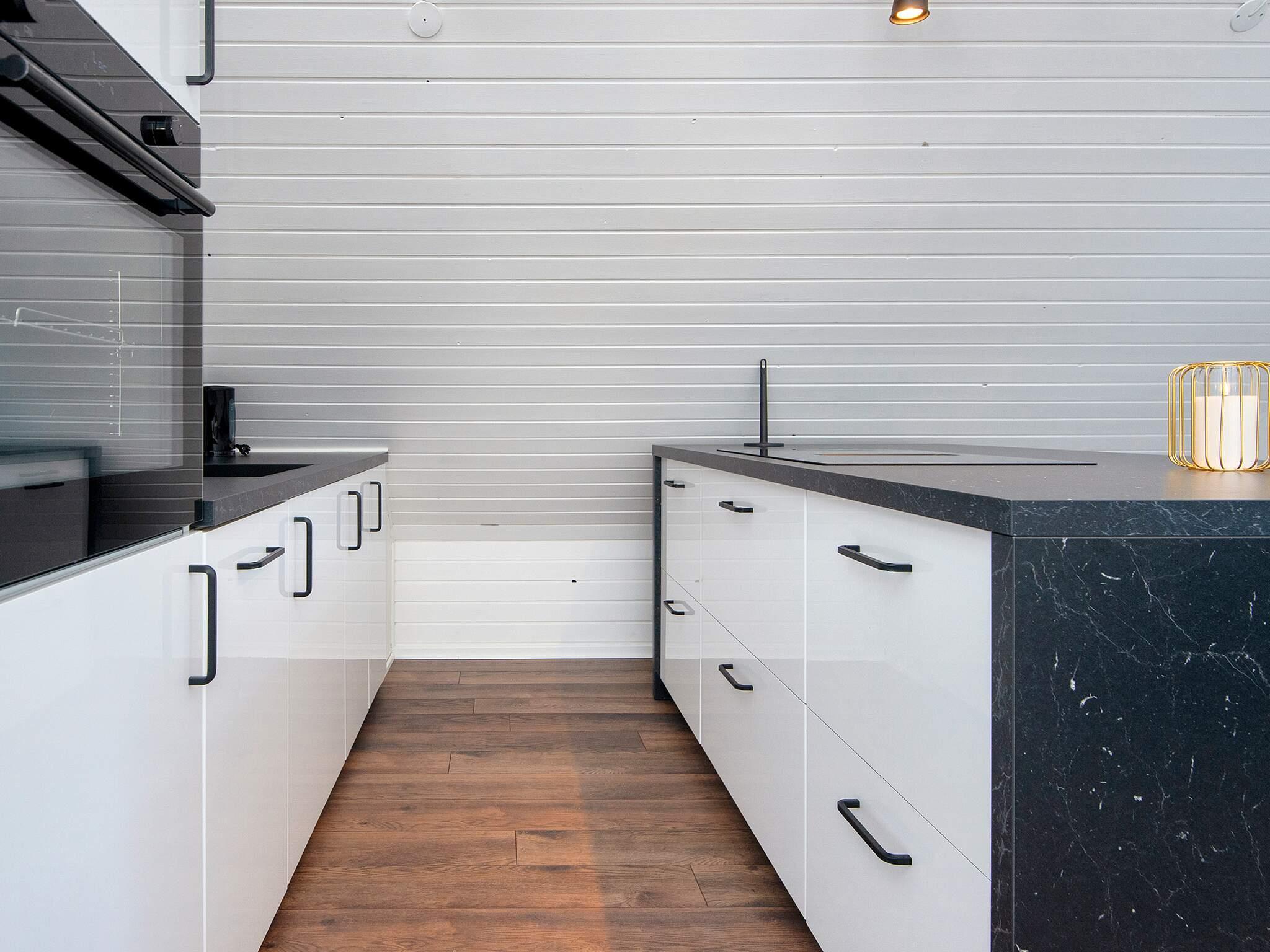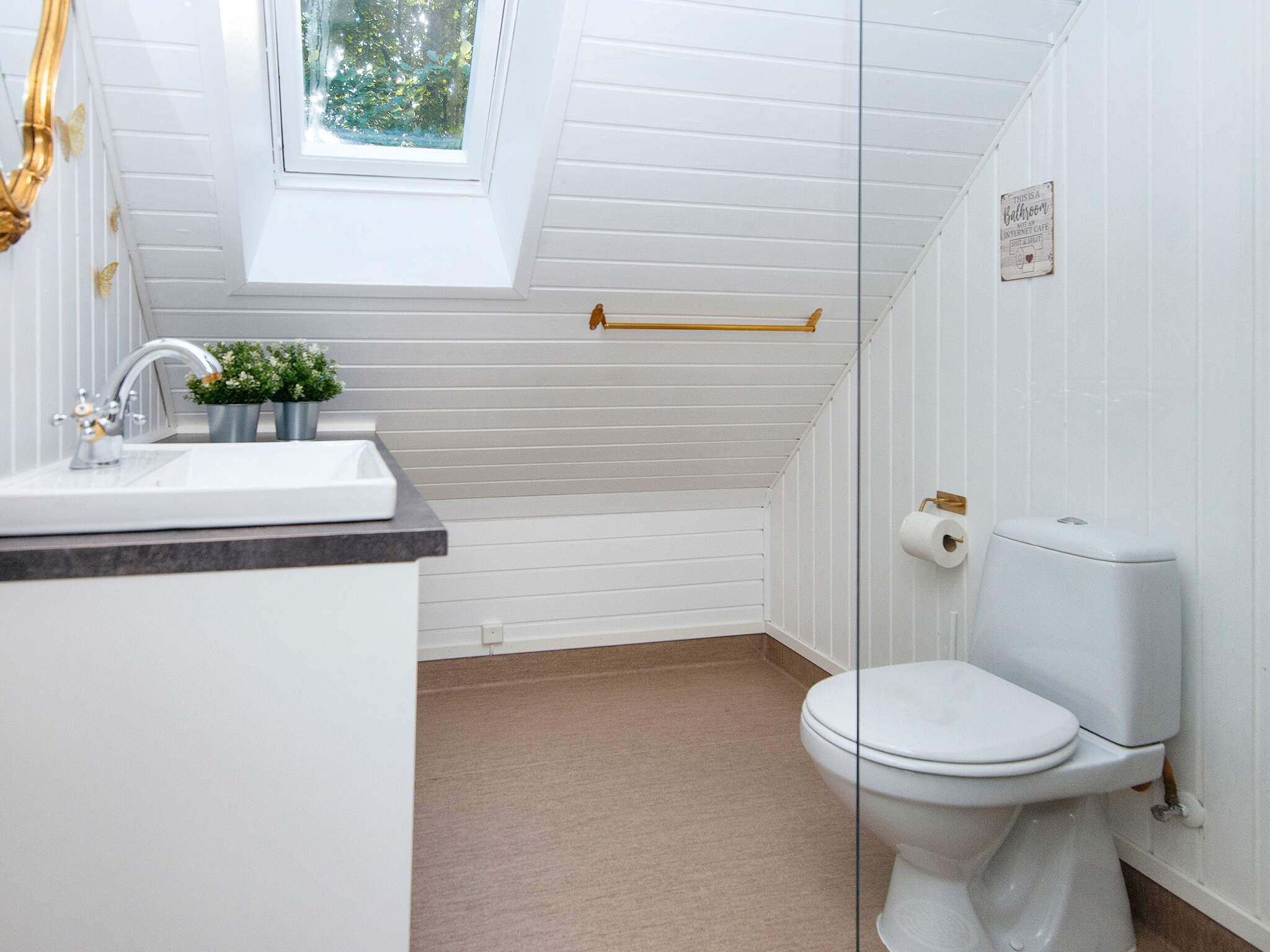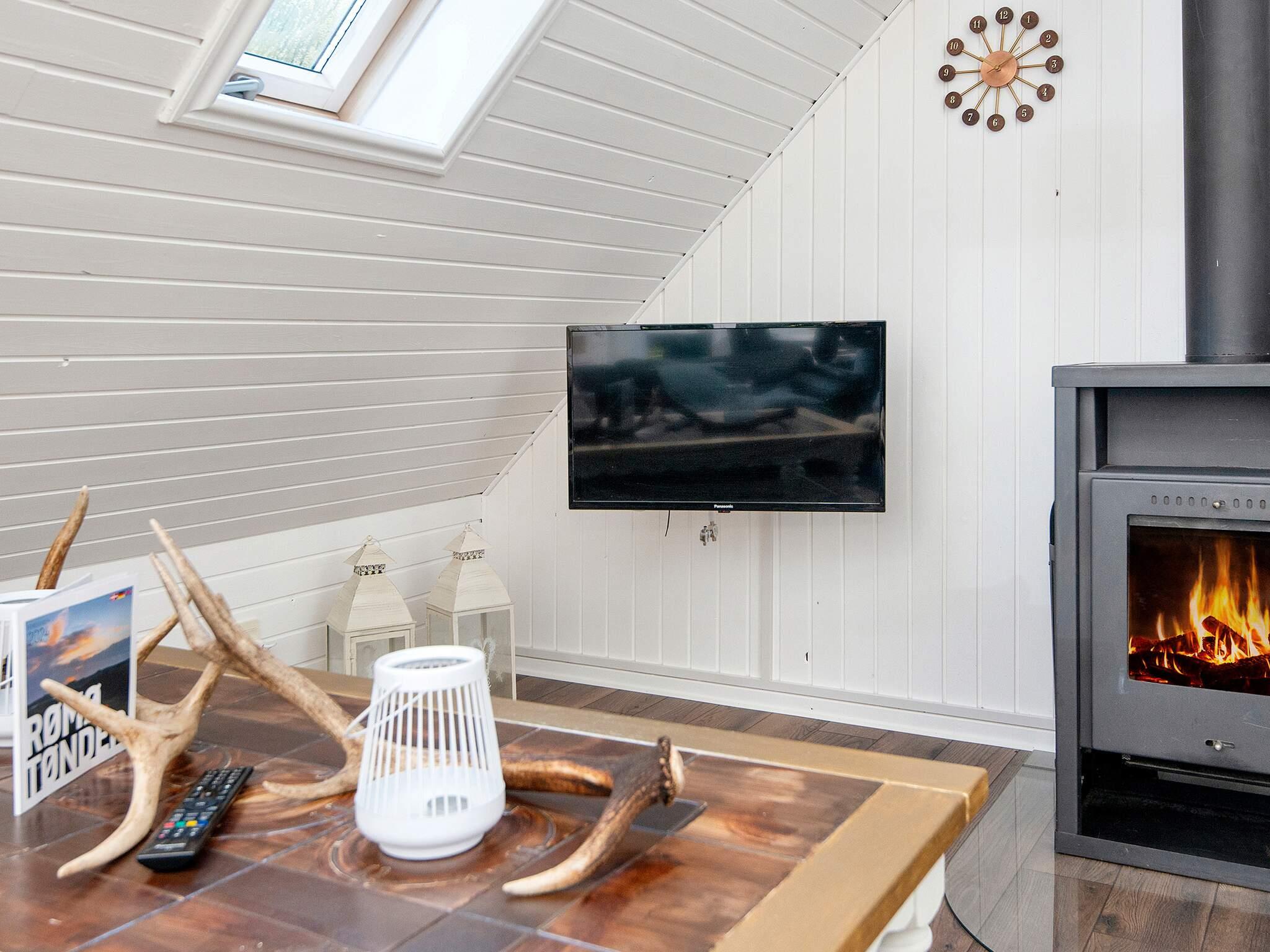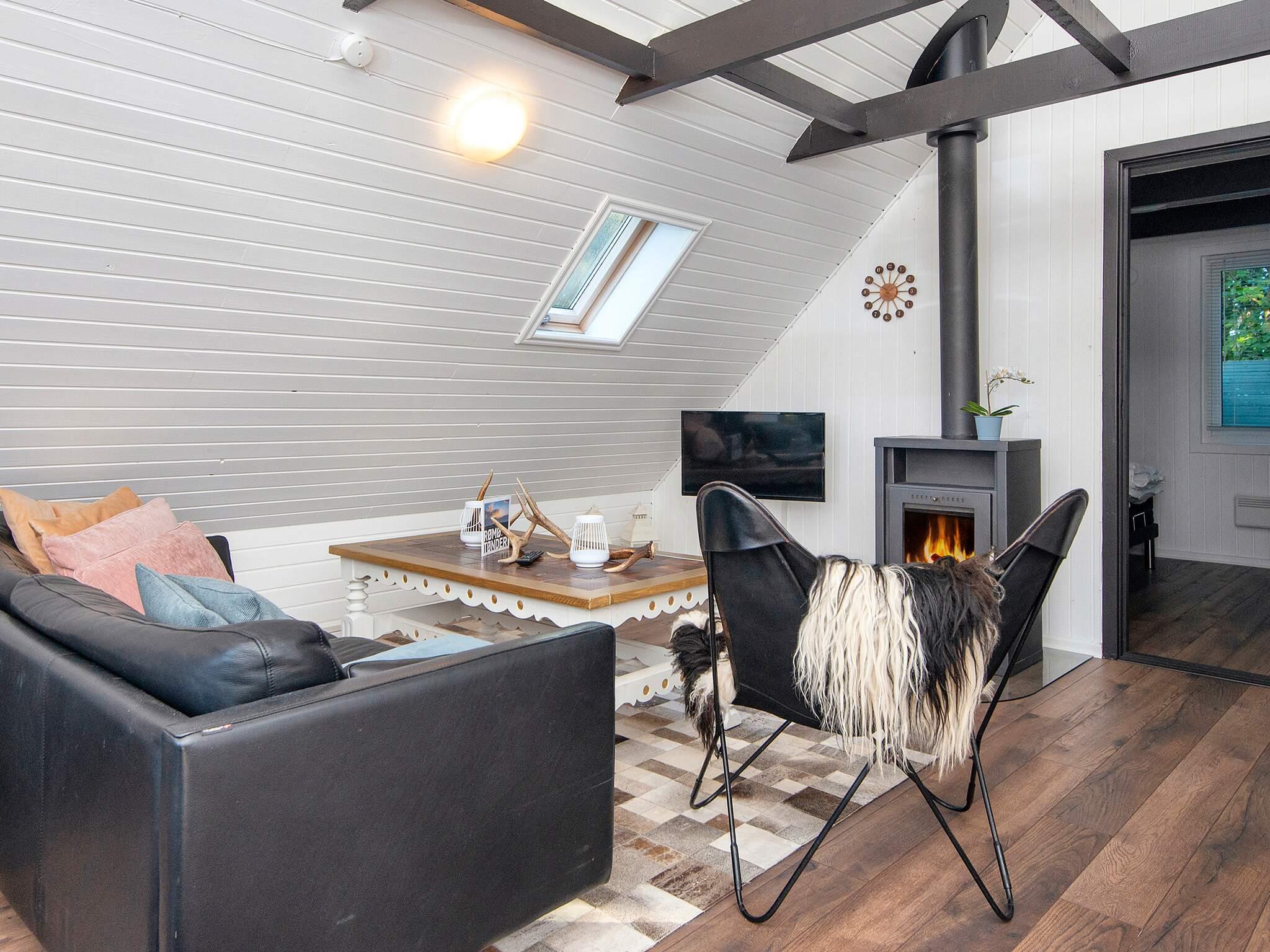 Feriehuset er lyst og moderne med smukke detaljer som fritlagte loftsbjælker og skråvægge og er hyggeligt indrettet. I alrummet kan du stå i køkkenet og tilberede lækre måltider, mens du sludrer med dem, der sidder i sofaen eller ved spisebordet. Om aftenen kan du tænde bål i brændeovnen og se en god film på tv. Der er desuden to gode soveværelser og et skønt badeværelse med brus i huset.