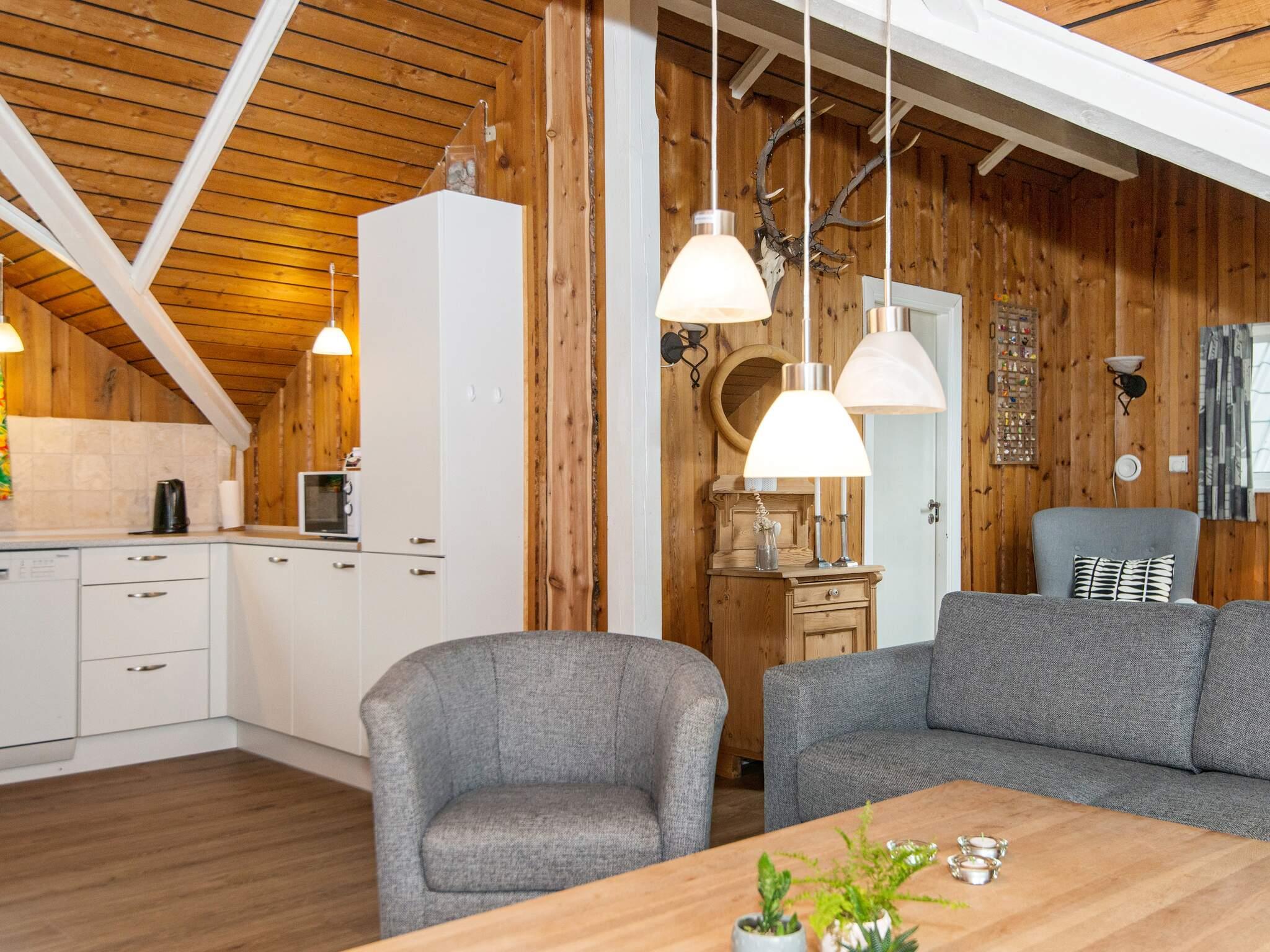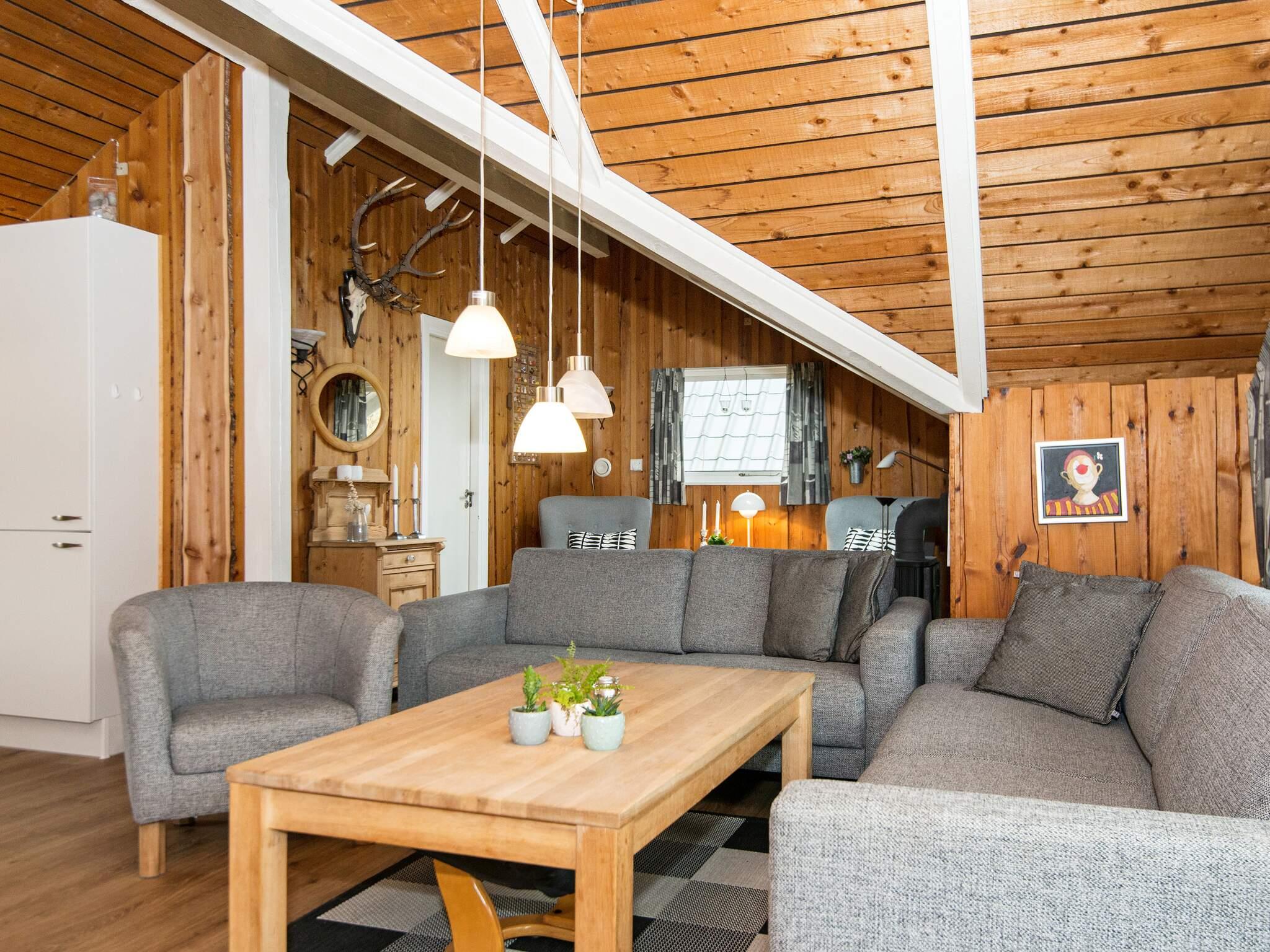 Hyggeligt sommerhus i Arrild Feriepark med moderne køkken, brændeovn og tæt på svømmehal og Givskud Zoo.