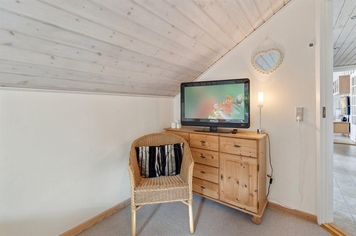 I ferieboligen er der 1 TV i stuen inkl. Chromecast og 24 TV-kanaler, 2 TV i værelser kun med Chromecast, 1 TV i værelse kun til DVD-afspiller,