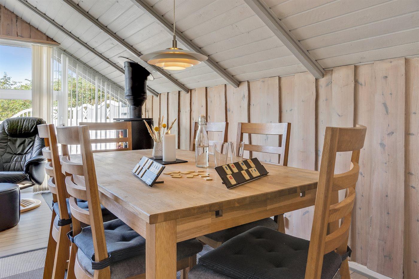 Sommerhuset egner sig til 6 personer. Ferieboligen er på 94 m² og er bygget i 1977. I 2007 gennemgik ferieboligen en delvis renovering. Det er ikke tilladt at medbringe husdyr. Ferieboligen er udstyret med energibesparende varmepumpe. Ferieboligen har vaskemaskine. Frysekapacitet på 90 liter. Der er desuden brændeovn. Til de små er der 1 stk. barnestol. Puslebord.