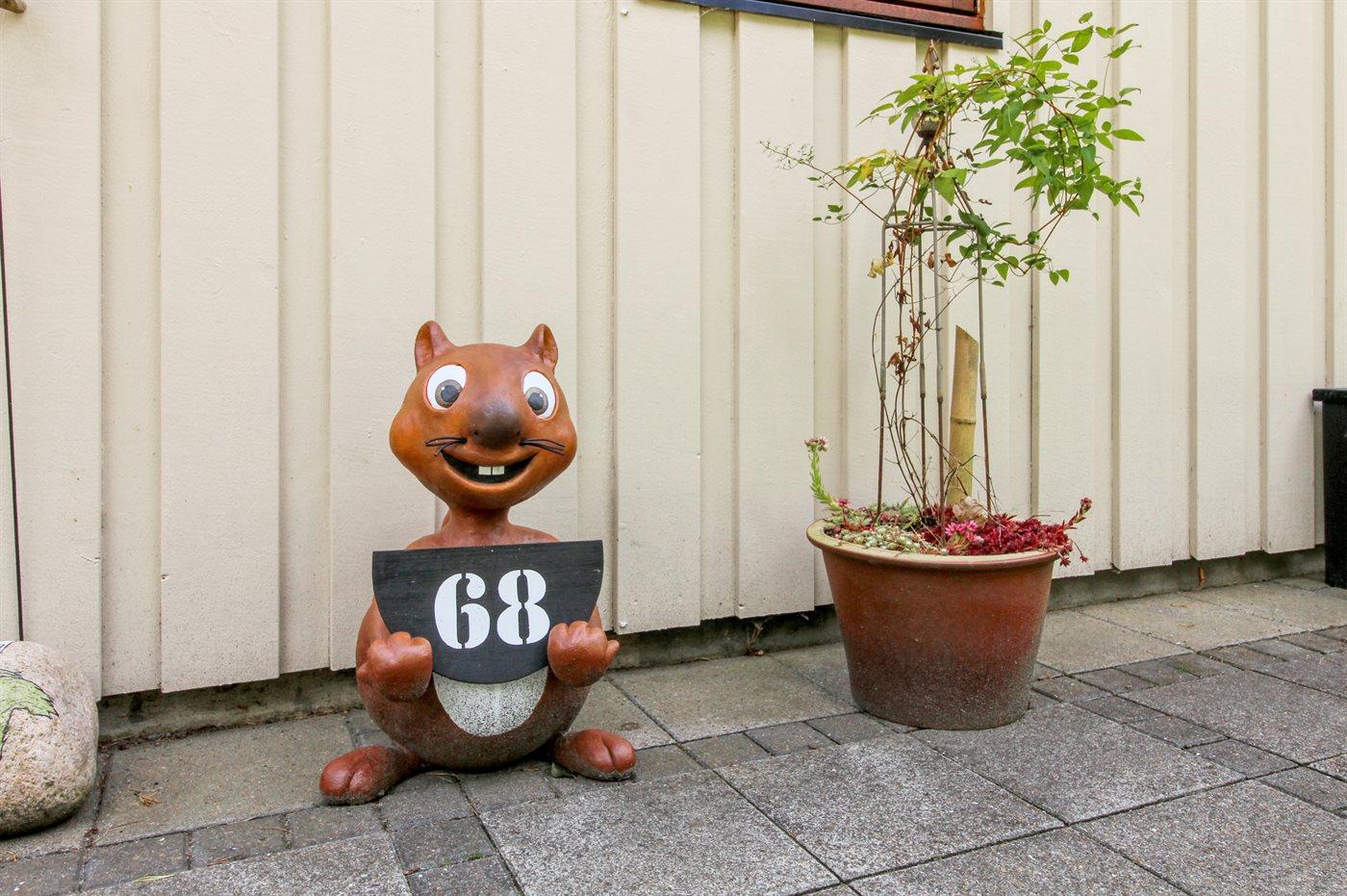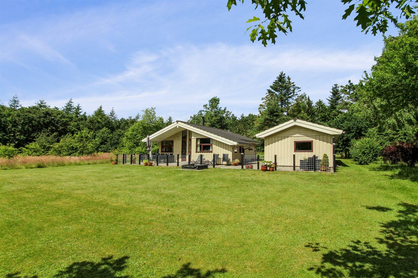 Ferieboligen er beliggende på en 800 m² stor naturgrund. Der er 30000 m til havet. Der er 17000 m til Vadehavet. Der er en sø i en afstand af 550 m. Nærmeste forretning er beliggende i en afstand af 700 m. Til ferieboligen hører 40 m² terrasseareal. Hængesofa. Der er redskabsrum. Sandkasse. Der er carport til rådighed. Der er installeret stik til opladning af elbil. Type 2 stik. Parkering ved ferieboligen.