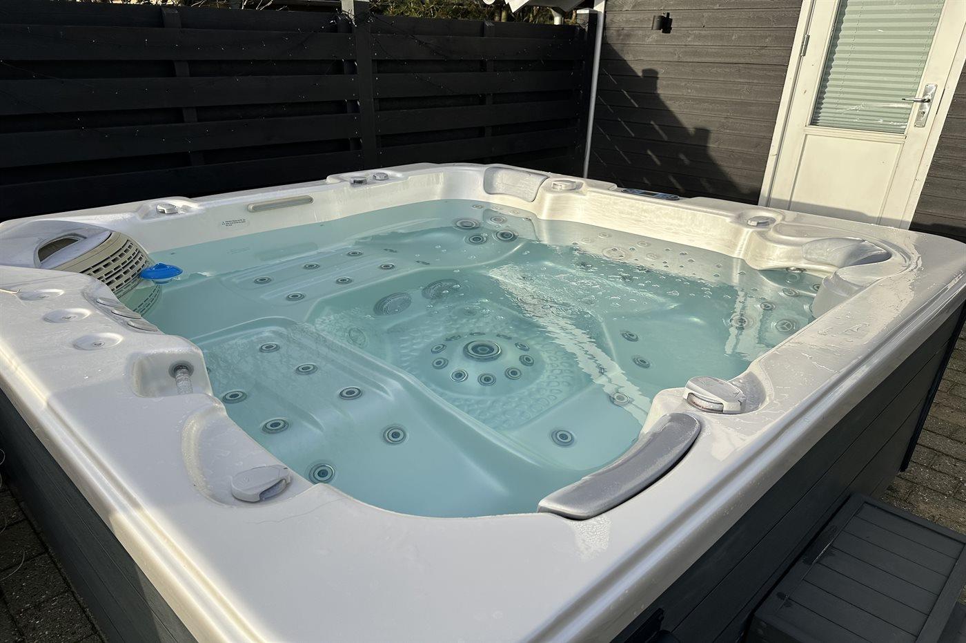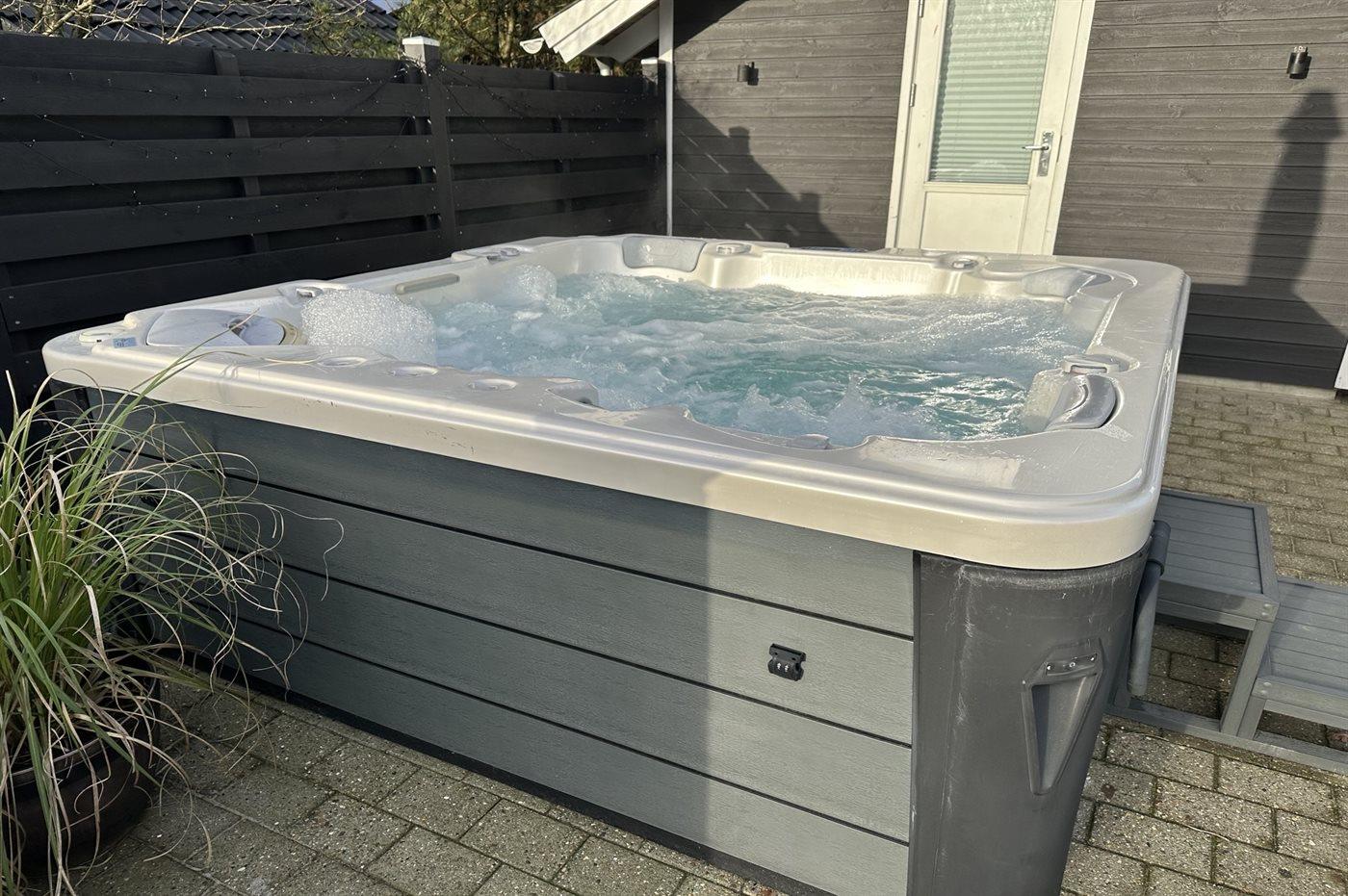Der er mulighed for afslapning i udendørs standvandsspa til 5 personer.