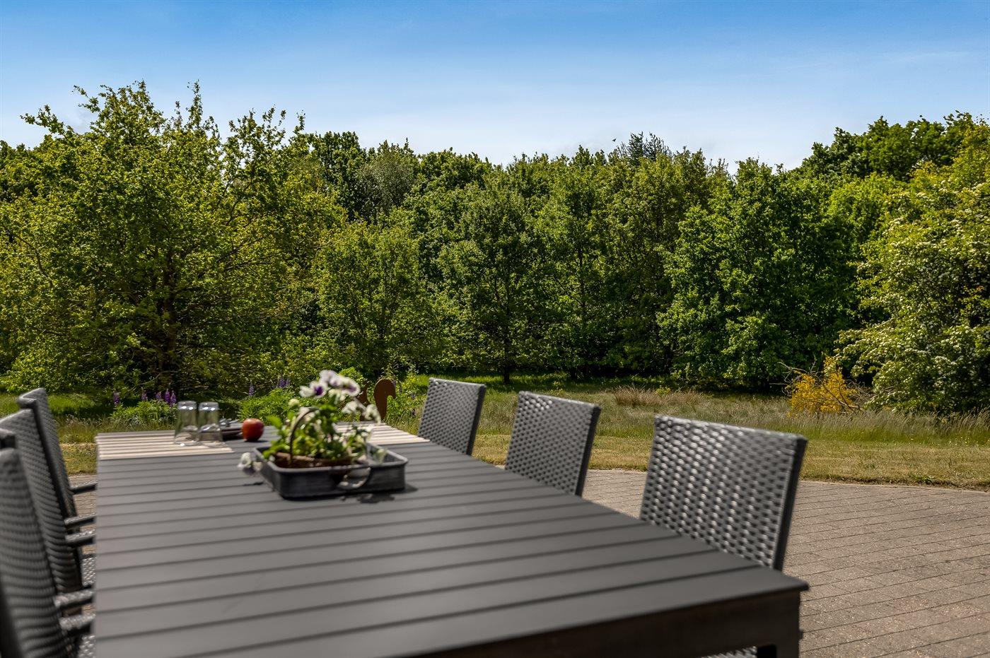 Ferieboligen er beliggende på en 850 m² stor naturgrund. Der er 30000 m til havet. Der er 20000 m til Vadehavet. Nærmeste forretning er beliggende i en afstand af 600 m. Til ferieboligen hører åbent terrasseareal. Desuden er der overdækket terrasse. Der ligger en legeplads i en afstand af 300 m. Grill til rådighed. Der er carport til rådighed. Parkering ved ferieboligen.