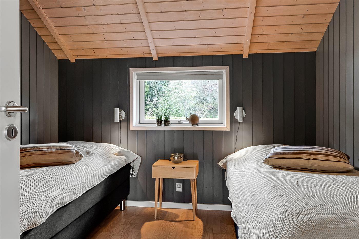 Der er i alt 3 soveværelser. Sovepladserne fordeler sig på: 4 sovepladser i dobbeltsenge. 2 sovepladser i enkeltsenge. 2 sovepladser i alkove. 2 af disse sovepladser befinder sig i stuen. Derudover er der 1 stk. barneseng.