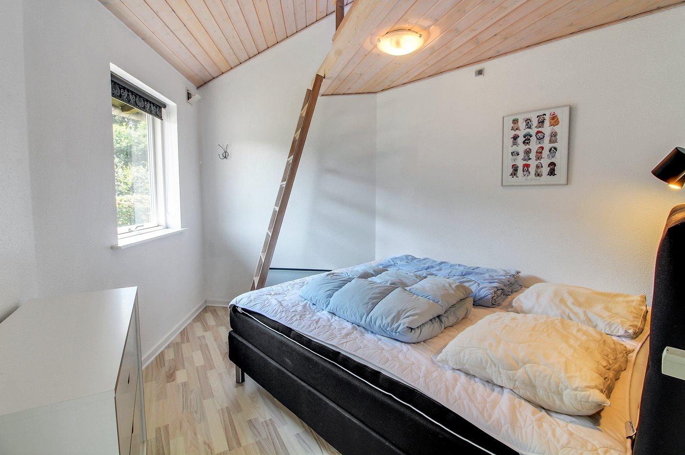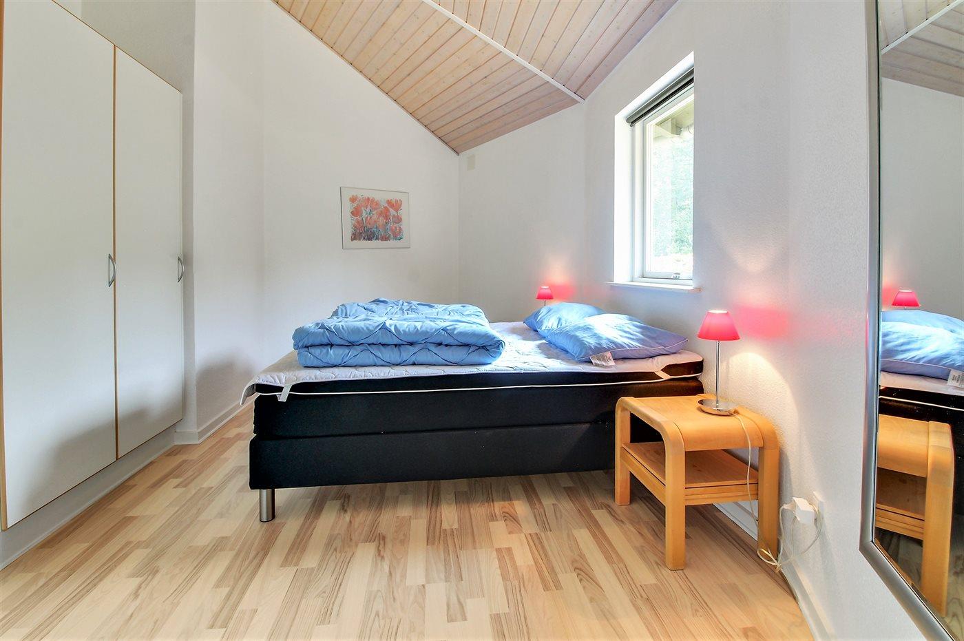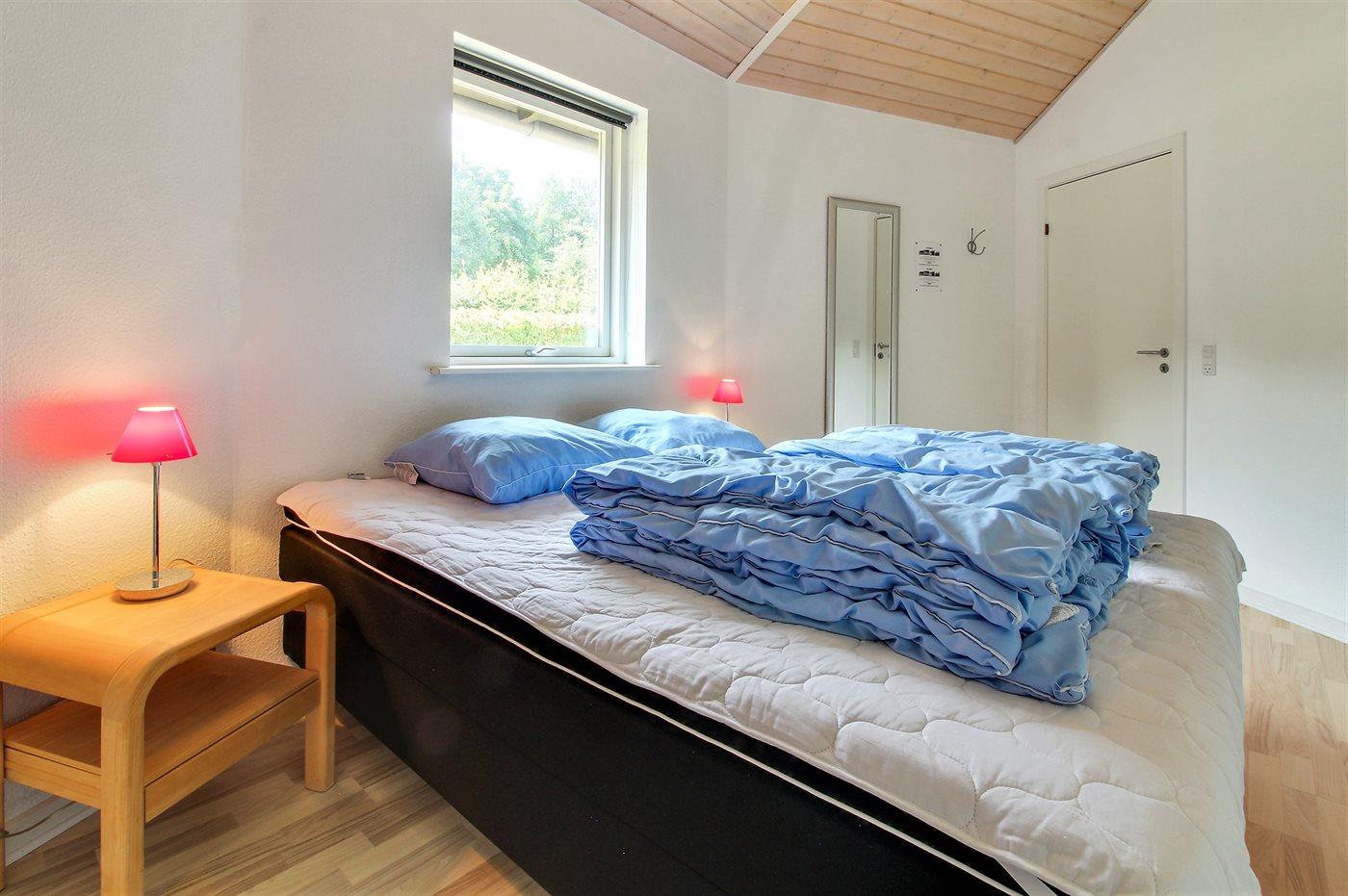 Der er i alt 2 soveværelser. Sovepladserne fordeler sig på: 4 sovepladser i dobbeltsenge. 2 sovepladser i enkeltsenge. Derudover er der 1 stk. barneseng.