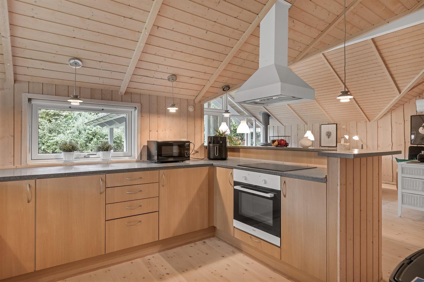 Køkkenet er udstyret med 1 køleskab. Der er 4 keramiske kogeplader, varmluftovn, mikrobølgeovn samt opvaskemaskine.