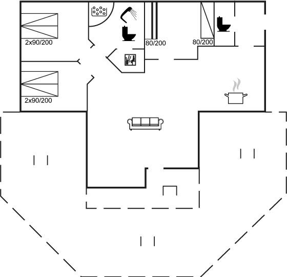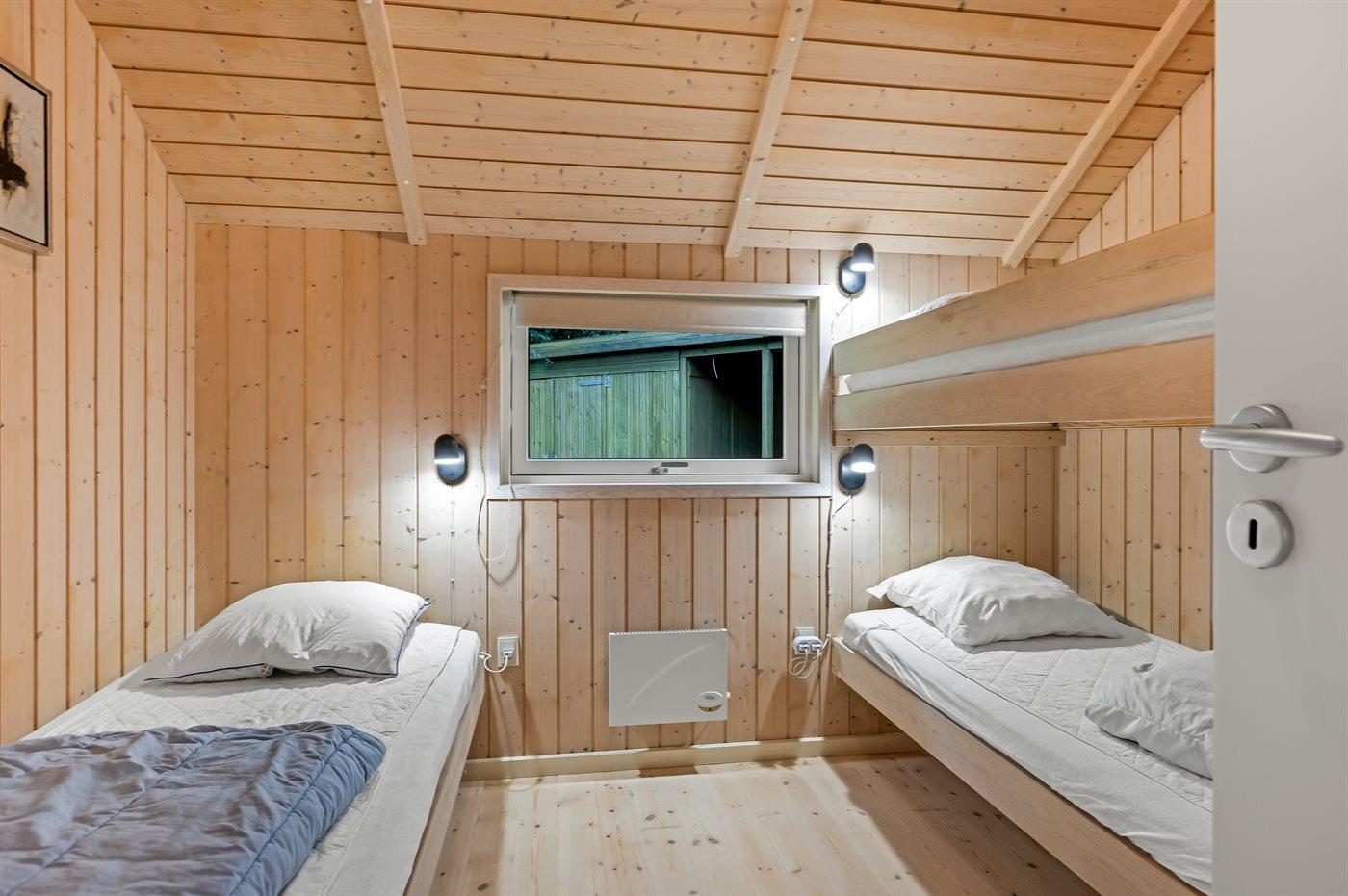 Der er i alt 3 soveværelser. Sovepladserne fordeler sig på: 4 sovepladser i dobbeltsenge. 1 soveplads i enkeltseng. 2 sovepladser i køjeseng. Derudover er der 1 stk. barneseng.