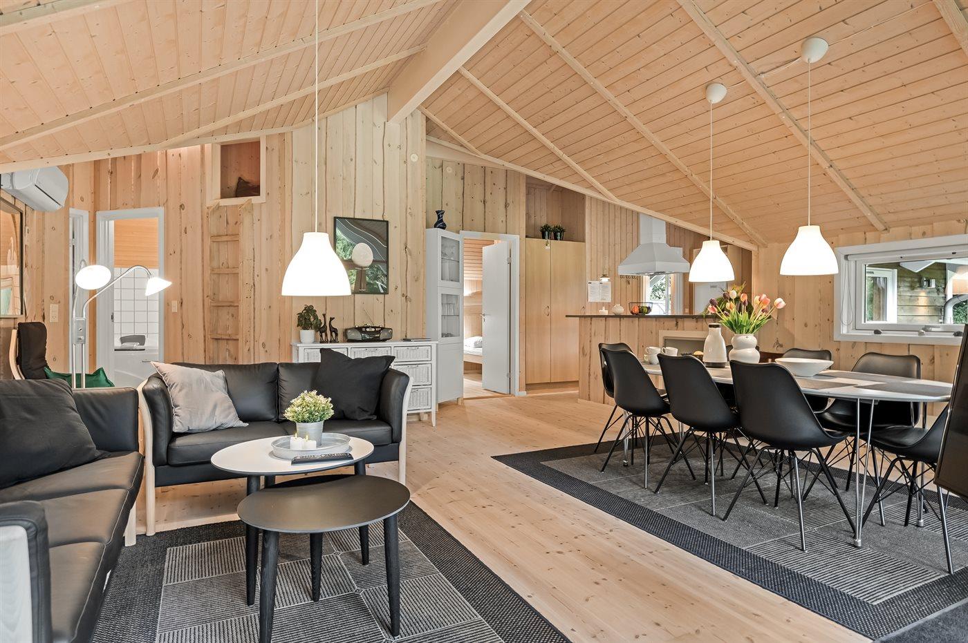 Et lækkert sommerhus beliggende på en stor havegrund i et skovområde. Til huset hører et stort, såvel åbent som overdækket terrasseareal med havemøbler. Et skønt sommerhus til en dejlig ferie i naturskønne omgivelser. Fra huset er der kun ca. 200 m til Arrild Fiskesø og 350 m til badeland.