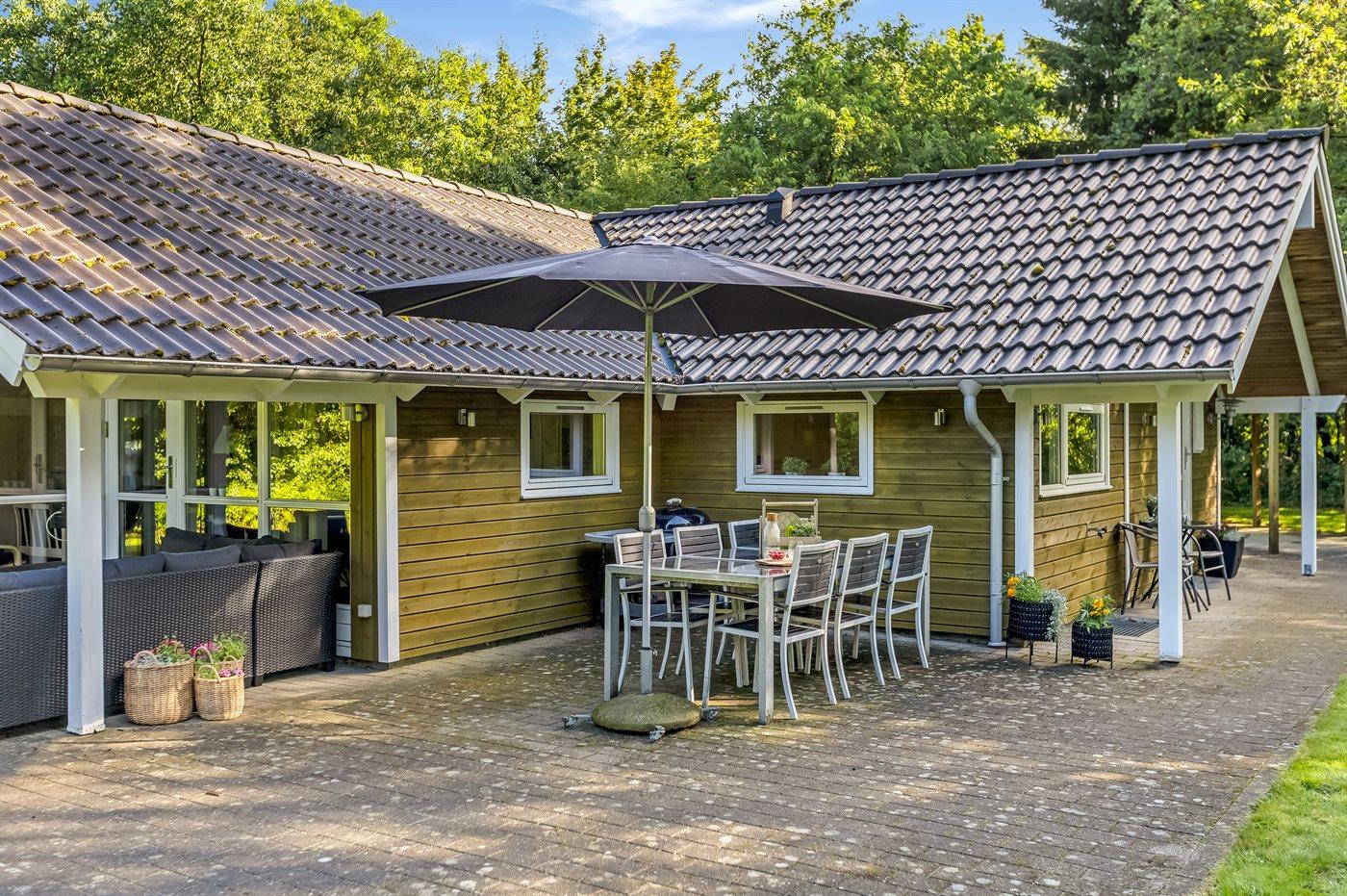 Lækkert sommerhus i naturskønt skovområde med spa, sauna og stor terrasse nær Arrild Fiskesø og badeland.