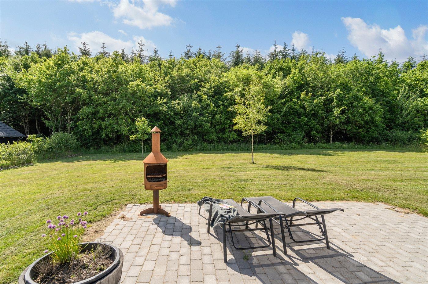 Ferieboligen er beliggende på en 850 m² stor naturgrund. Der er 31000 m til havet. Der er 18000 m til Vadehavet. Nærmeste forretning er beliggende i en afstand af 400 m. Der er en golfbane i en afstand af 1000 m. Til ferieboligen hører 50 m² terrasseareal. Der findes et fuldt isoleret opbevaringsrum, som man tilgår via en overdækket passage. Grill til rådighed. Parkering ved ferieboligen.