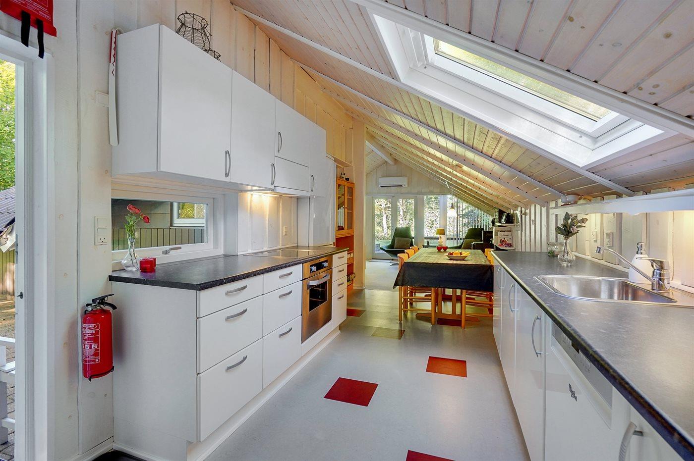 Køkkenet er udstyret med 1 køleskab samt fryser med en kapacitet på 50 liter. Der er 4 keramiske kogeplader, varmluftovn, mikrobølgeovn samt opvaskemaskine.