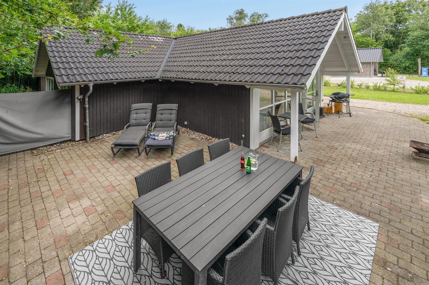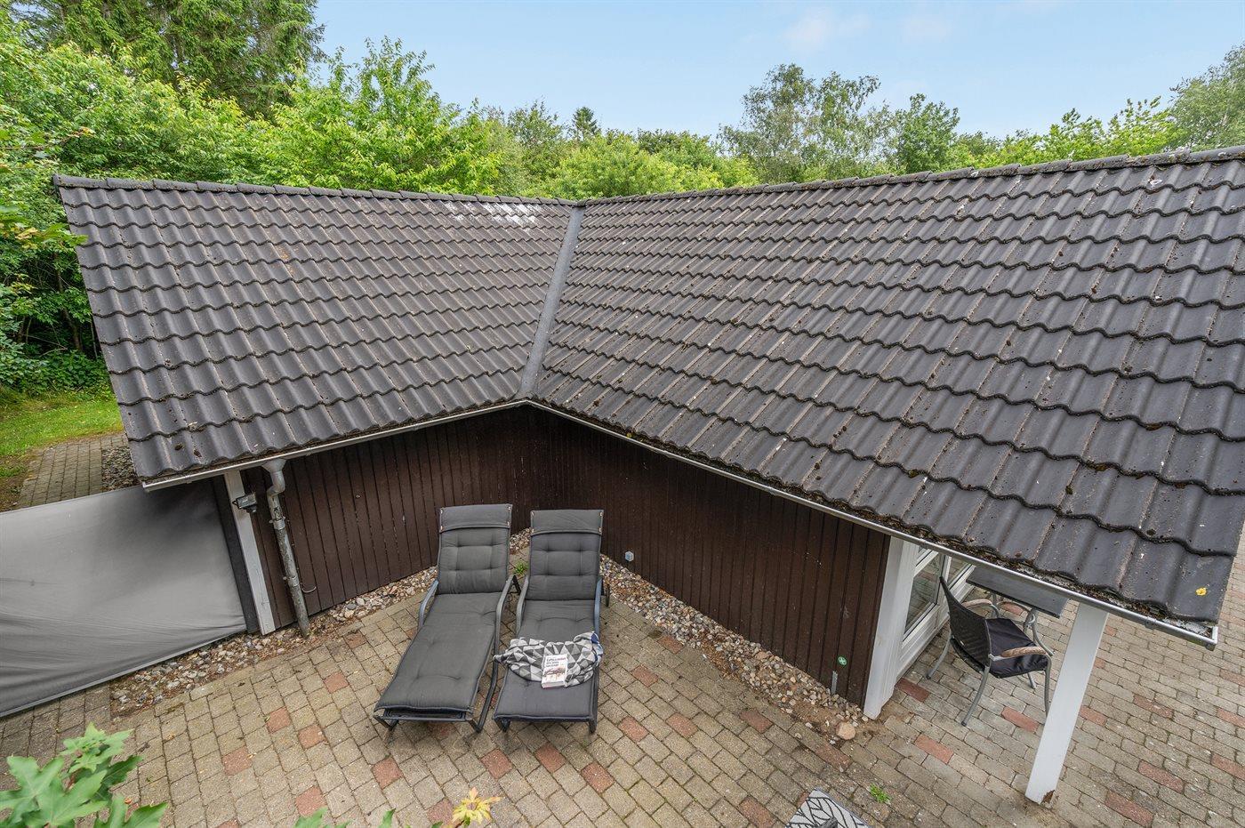 Ferieboligen er beliggende på en 805 m² stor naturgrund. Der er 28000 m til havet. Nærmeste forretning er beliggende i en afstand af 1000 m. Der er en golfbane i en afstand af 1500 m. Til ferieboligen hører 30 m² terrasseareal. Desuden er der 10 m² overdækket terrasse. Gynge. Sandkasse. Der er installeret stik til opladning af elbil. Parkering ved ferieboligen.