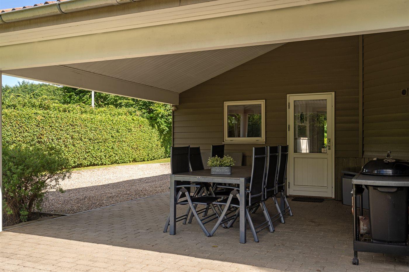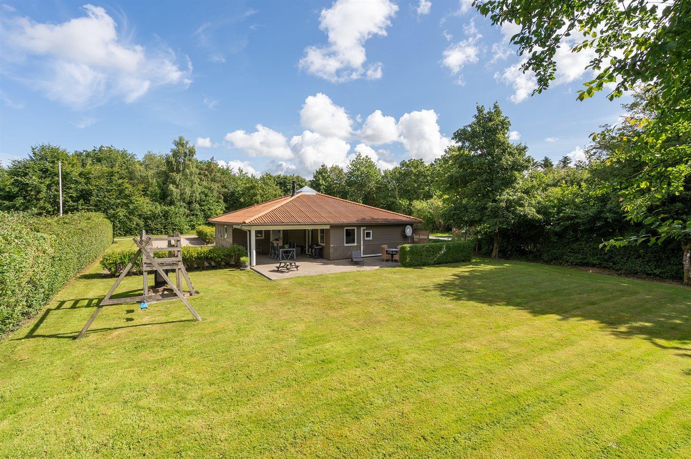 Ferieboligen er beliggende på en 877 m² stor naturgrund. Der er 29000 m til havet. Der er en sø i en afstand af 1100 m. Nærmeste forretning er beliggende i en afstand af 1300 m. Til ferieboligen hører 20 m² terrasseareal. Desuden er der 30 m² overdækket terrasse. Gynge. Sandkasse. Rutchebane. Der er installeret stik til opladning af elbil. Type 2 stik. Med 11 kW ladeeffekt. Parkering ved ferieboligen.