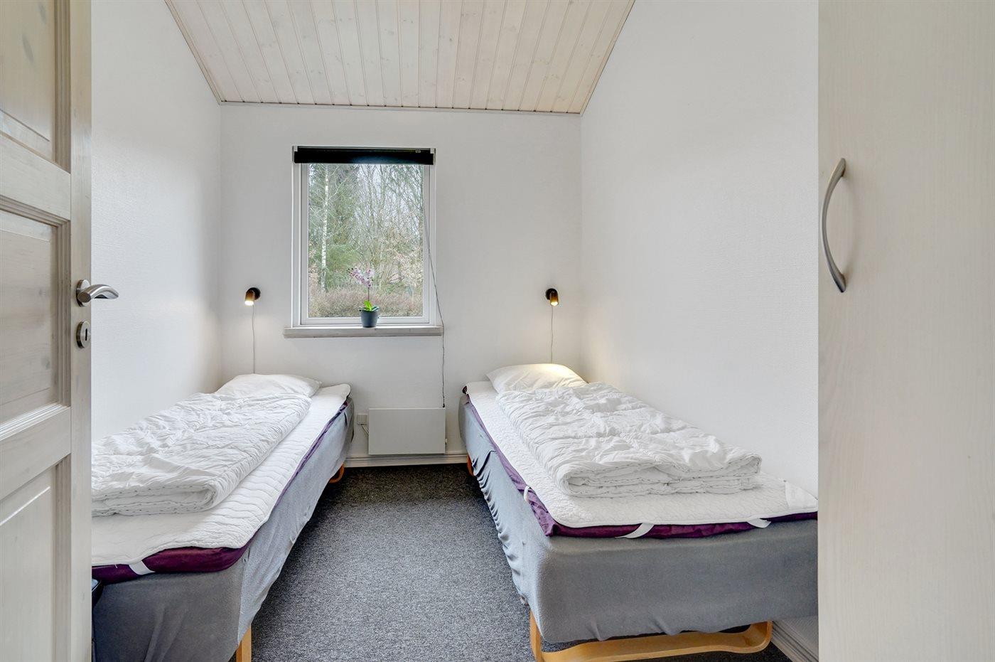 Der er i alt 4 soveværelser. Sovepladserne fordeler sig på: 6 sovepladser i dobbeltsenge. 2 sovepladser i enkeltsenge. Derudover er der 1 stk. barneseng.