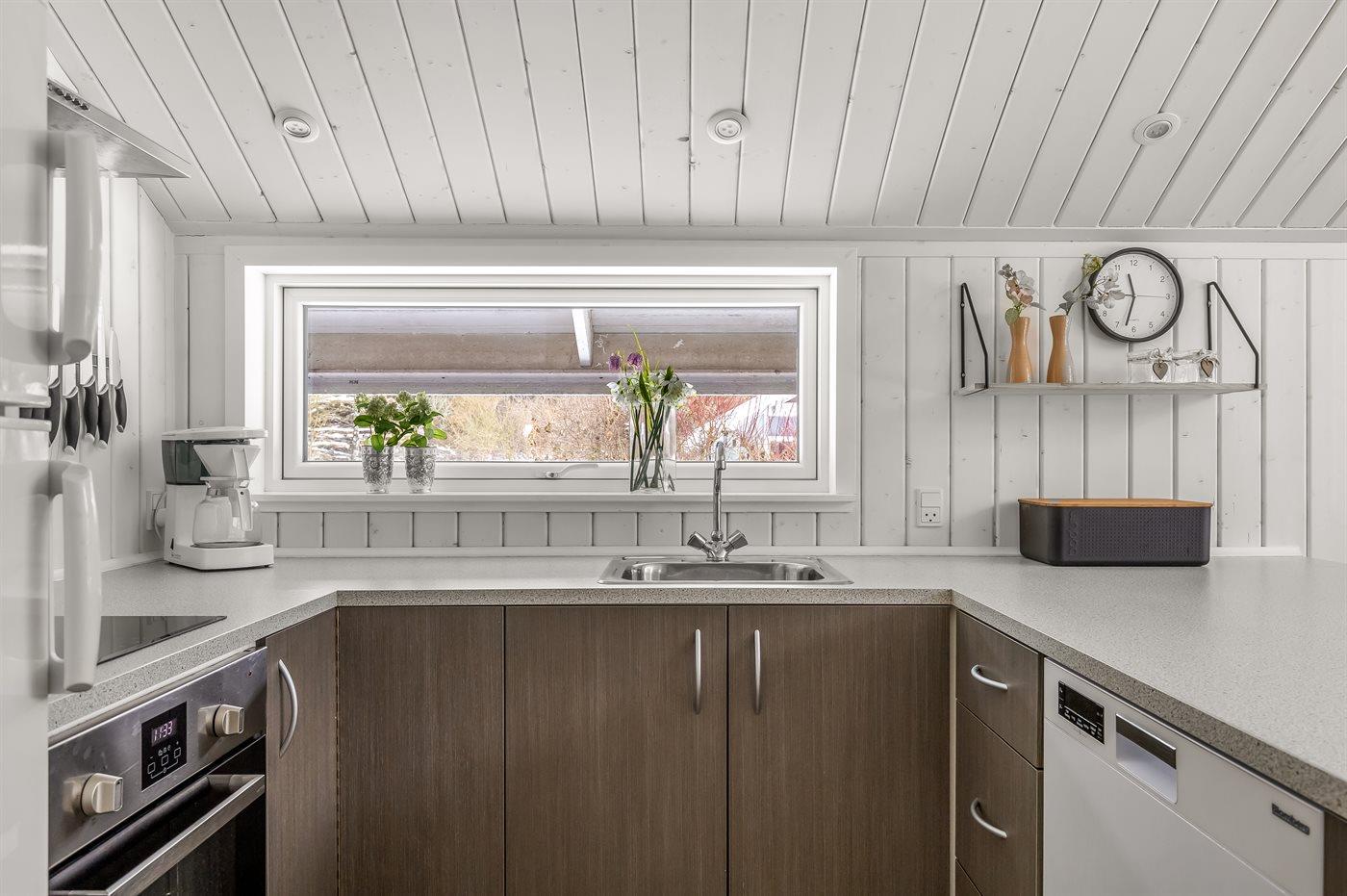 Køkkenet er udstyret med 1 køleskab. Der er 4 induktionskogeplader, varmluftovn samt opvaskemaskine.