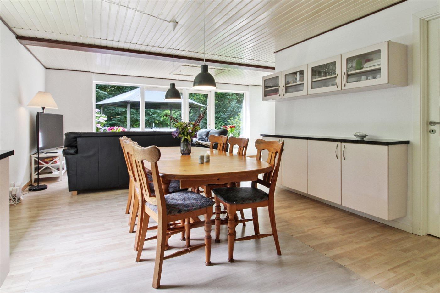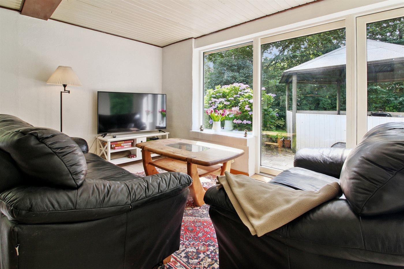 På en hyggelig og ugenert grund finder man dette sommerhus.