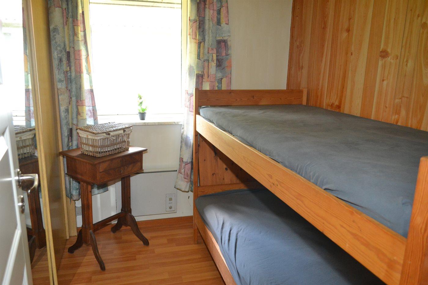 Der er i alt 3 soveværelser. Sovepladserne fordeler sig på: 4 sovepladser i dobbeltsenge. 2 sovepladser i køjeseng. Derudover er der 1 stk. barneseng.